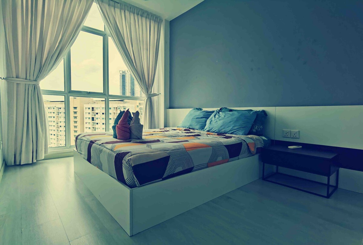 Toplo i udobno mesto za opuštanje, opuštanje i noćni san. Kratka pješačka udaljenost do Juru Sentrala, Icon Sitija, restorana, terena za hranu, kafića, apoteke i prodavnice. Udaljenost vožnje: 5 minuta do Icon Cityja i Auto Cityja 10 minuta do mosta Penang. 12 minuta do stanice BM KTM 10 minuta do bolnice 30 minuta do Džordžtauna Penanga Uređaj je dobro opremljen klima-uređajem, brzim WI-FI MREŽOM, Netflix-om, TV-om, mašinom za pranje veša, dobro opremljenom kuhinjom i priborom za jelo. Savršeno za parove, bff, solo smještaje!