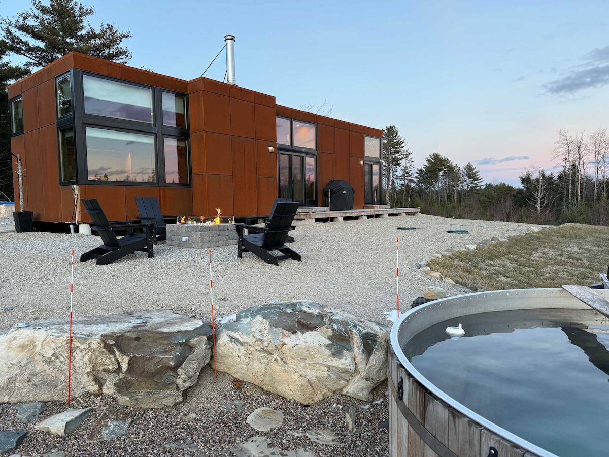 25% popusta na boravke od 2 noćenja (pon-ned) od oktobra nadalje! The Cabin at The Woodlots is located minutes from the Atlantic Ocean in the seaside community of Chester Basin. Naša moderna brvnara okružena je hektarima akadijske šume sa zadivljujućim pogledom na prirodni pejzaž u svim pravcima. Ispred se nalazi velika hidromasažna kada na drva, dok stolice Adirondack i ognjište pružaju savršeno mjesto za opuštanje i održavanje topline. Mirno jezero Kroft je kratka šetnja kroz šumu.