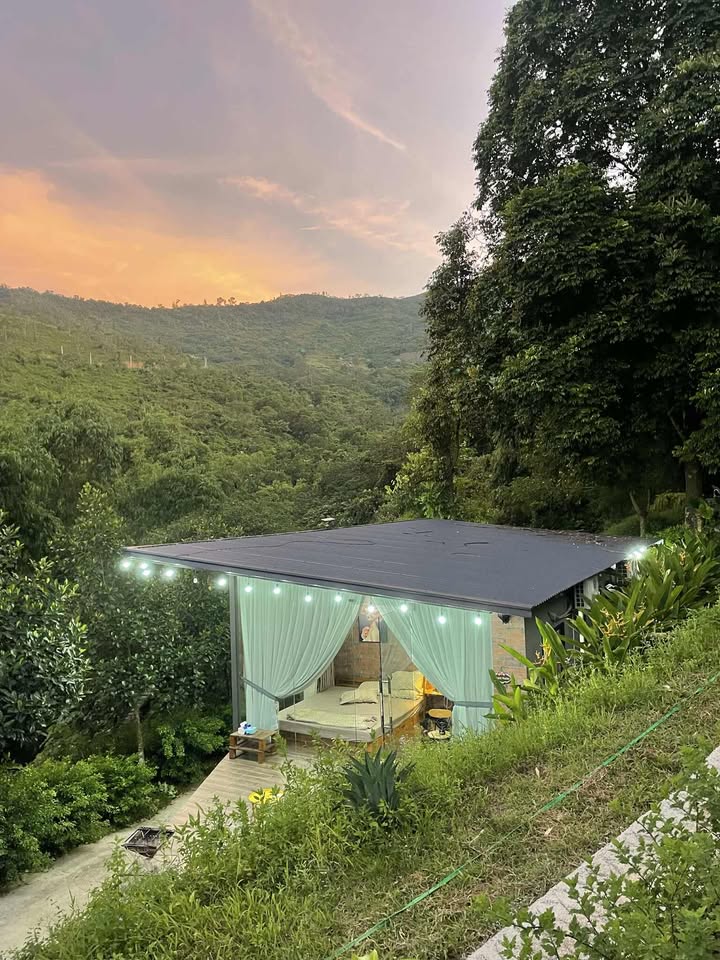 6 SPAVAĆIH SOBA, 14 GOSTIJU (3 APARTMANA) To je privatno odmaralište usred planina i šuma. Područje je pogodno za prijatna okupljanja kojima je potreban otvoren – miran – odvojen prostor, ali i dalje pogodno za putovanje iz Hanoja (samo 45 minuta). Cela površina je skoro 6000 m², okružena brdima, drvećem i svežim vazduhom. Najistaknutiji prostor u okolini je prelivni bazen sa pogledom na planine, gde gosti mogu da gledaju izlazak sunca, opuste se u zalasku sunca ili organizuju roštilj pored super hladnog bazena.