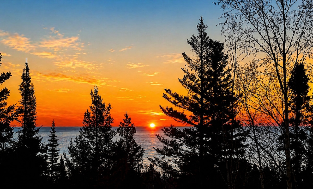 Uživajte u atmosferi van mreže dok ste u samom srcu severne obale. Smještena na 5 minuta od svjetionika Split Rock, Wild Pines Cabin je potpuno renovirani okvir iz 1974. godine koji se nalazi na vrhu 40 privatnih hektara sa pogledom na jezero Superior. Tokom boravka, pješačite kroz objekat, posmatrajte divlje životinje, pijuckajte kafu pored vatre dok uživate u izlasku sunca iznad jezera ili izađite na obližnje Ooseberi, Black Beach ili Tettegouche. Predivno privatno utočište u severnu šumu u bilo koje doba godine!