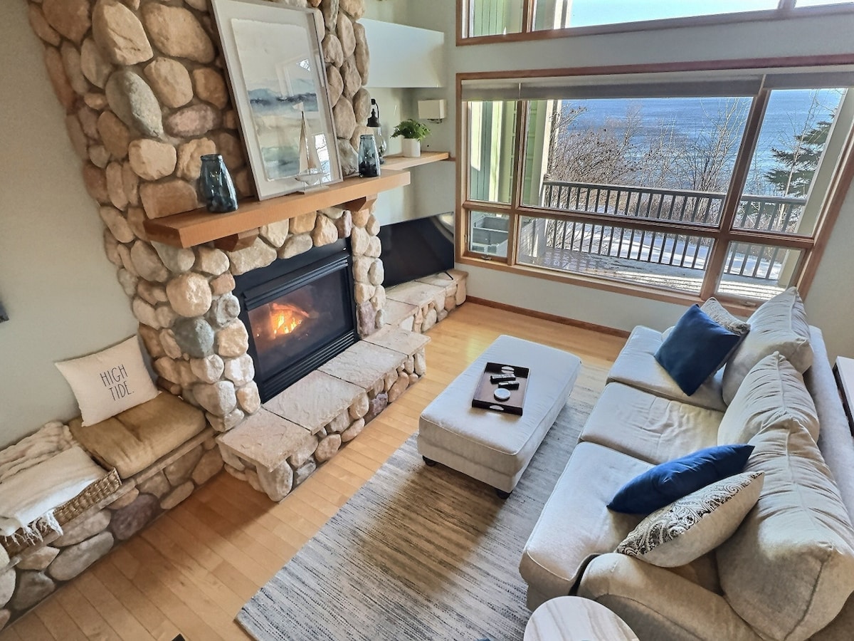 Probudite se uz zlatne izlaze sunca iznad jezera Superior sa svog privatnog balkona, pijuckajte kafu dok se talasi sudaraju na jezeru Superior i opustite se pored udobnog kamina nakon cjelodnevne avanture. Samo nekoliko koraka od pješačkih staza i nekoliko minuta od skijališta i golfa u planinama Lutsen, ovaj prostrani 2BR/2.5BA townhome nudi grijane podove, pogled na jezero, pristup plaži (sezonski) i više dnevnih prostora. Savršeno za porodice, prijatelje, pa čak i za vaše štene — to je više od boravka, to je doživljaj na sjevernoj obali koji nikada nećete zaboraviti.