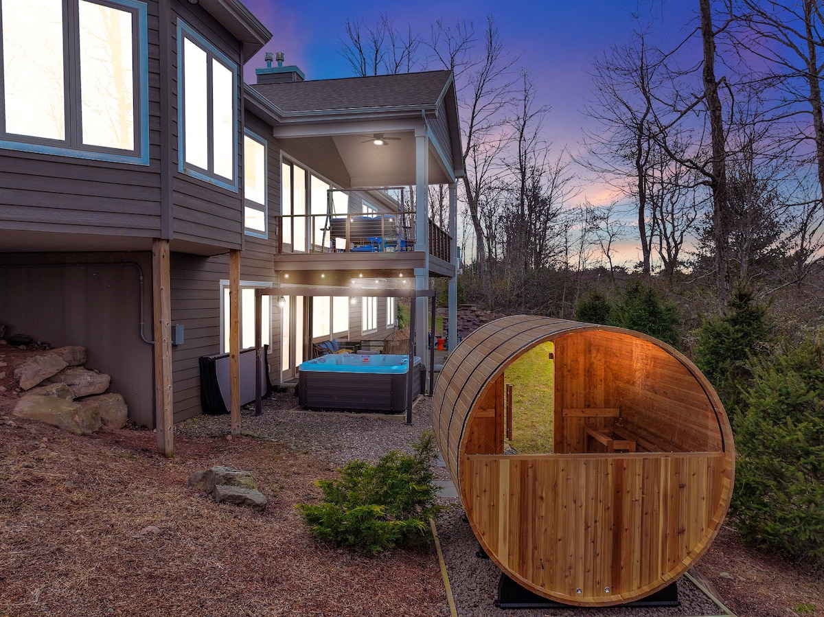Dobrodošli u Sundrift Escape – jedinstveno luksuzno utočište od 1,05 hektara u kojem može da spava do 16 gostiju sa sadržajima u stilu odmarališta, kao što su: 🛁 Hidromasažna kada i sauna 🍿 Kućni bioskop 🔥 Ognjište i roštilj 🕹️ Prostorija za igre 🏋️♀️ Lična teretana/velnes prostor Stolica 💺 za masažu ⛱️ Više terasa i dvorište ⛳ Pešački pristup golf terenu Split Rock ⛵️ 5 minuta do jezera Harmonija 🥾 5 minuta do pešačkih staza ⛷️ 4 skijališta u blizini 🏄♂️ Zatvoreni vodeni park 🏎️ 15 minuta do trkačke staze Poconos 🐣 Prikladno za porodice
