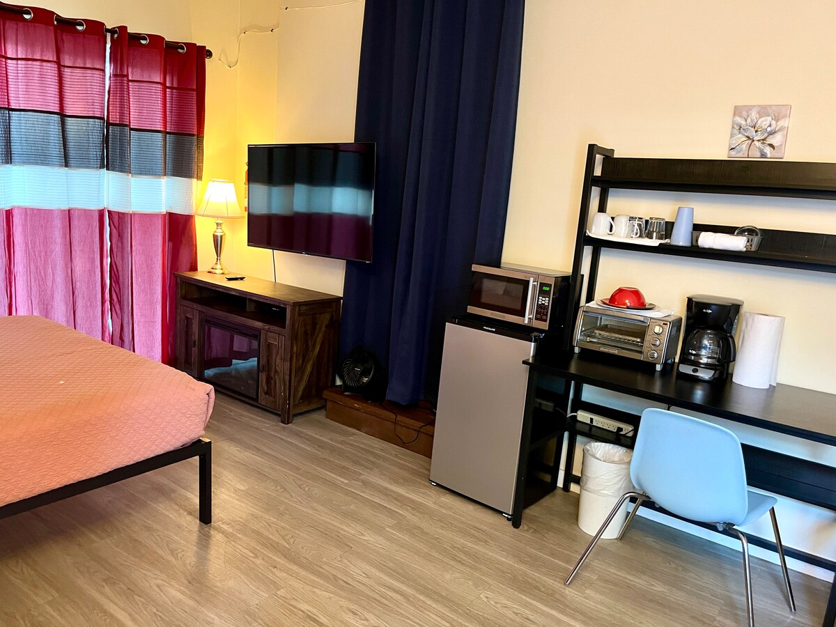 Well-appointed 750sf guest house. Spacious kitchen-dining-living area. Separate bedroom. Utility room w/ full-size washer-dryer. Full gourmet kitchen: stainless-steel appliances. Granite counters. Bedroom incl. full closet, dresser, queen bed. Plenty of quality linens. Full bathroom, extra-deep tub. Heating and AC. HD TV with standard cable provided. High-speed Wi-Fi. Secure private entrance. No pets or smokers.
