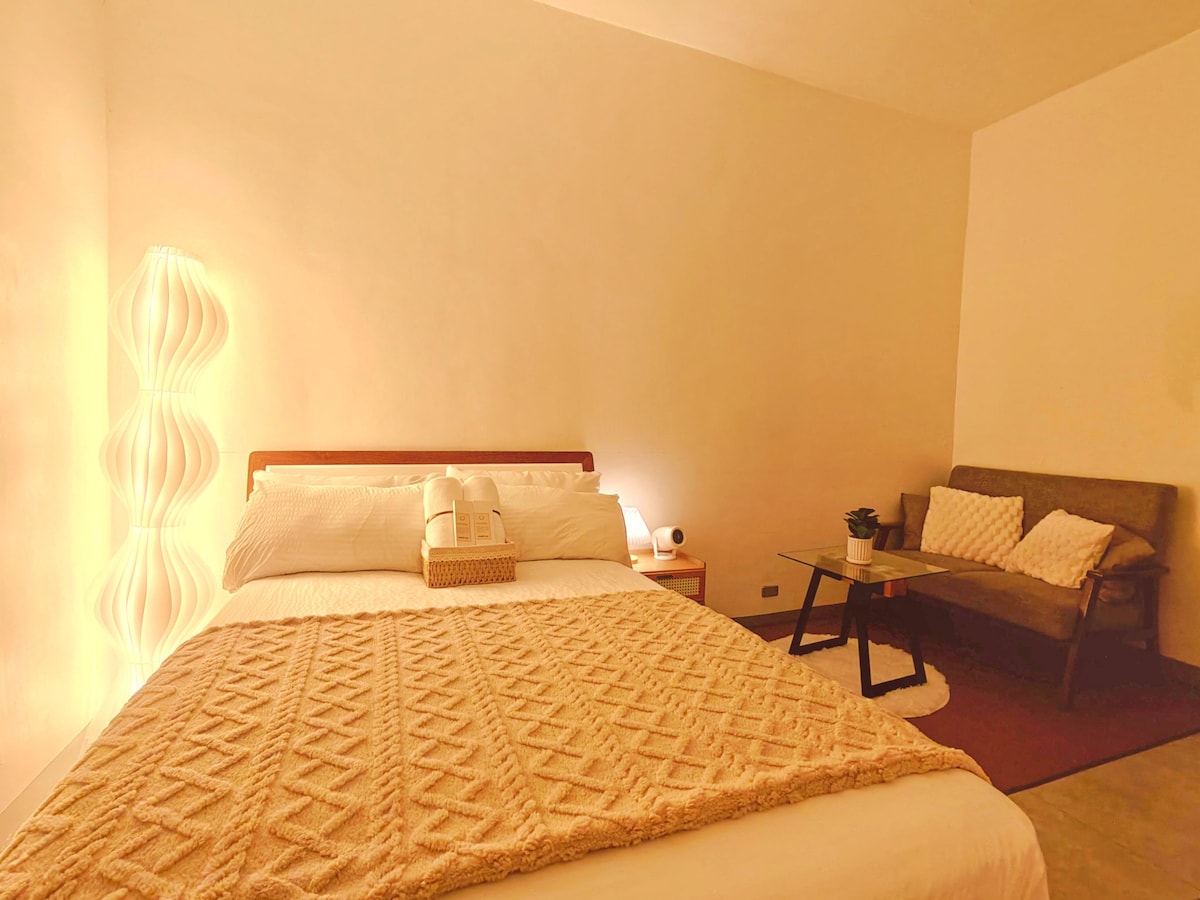 Savršeno smešten u srcu Poblaciona, restorana i zabavne četvrti Makati, naš smeštaj se nalazi na 4. spratu butik stambene zgrade sa 24-časovnim obezbeđenjem. Naš jednosobni apartman ima predivan pogled, moderan enterijer iz sredine 20. veka i sadržaje kao što su TV od 55 inča, Netflix, Wi-Fi od 150 Mbps i SMEG kuhinja. Prošetajte do obližnjih barova, opuštenih restorana i otmenih restorana. Doživite umetnost i kulturu! Savršeno odredište za parove, avanturiste koji putuju sami, poslovne putnike, kratka putovanja i odmor.