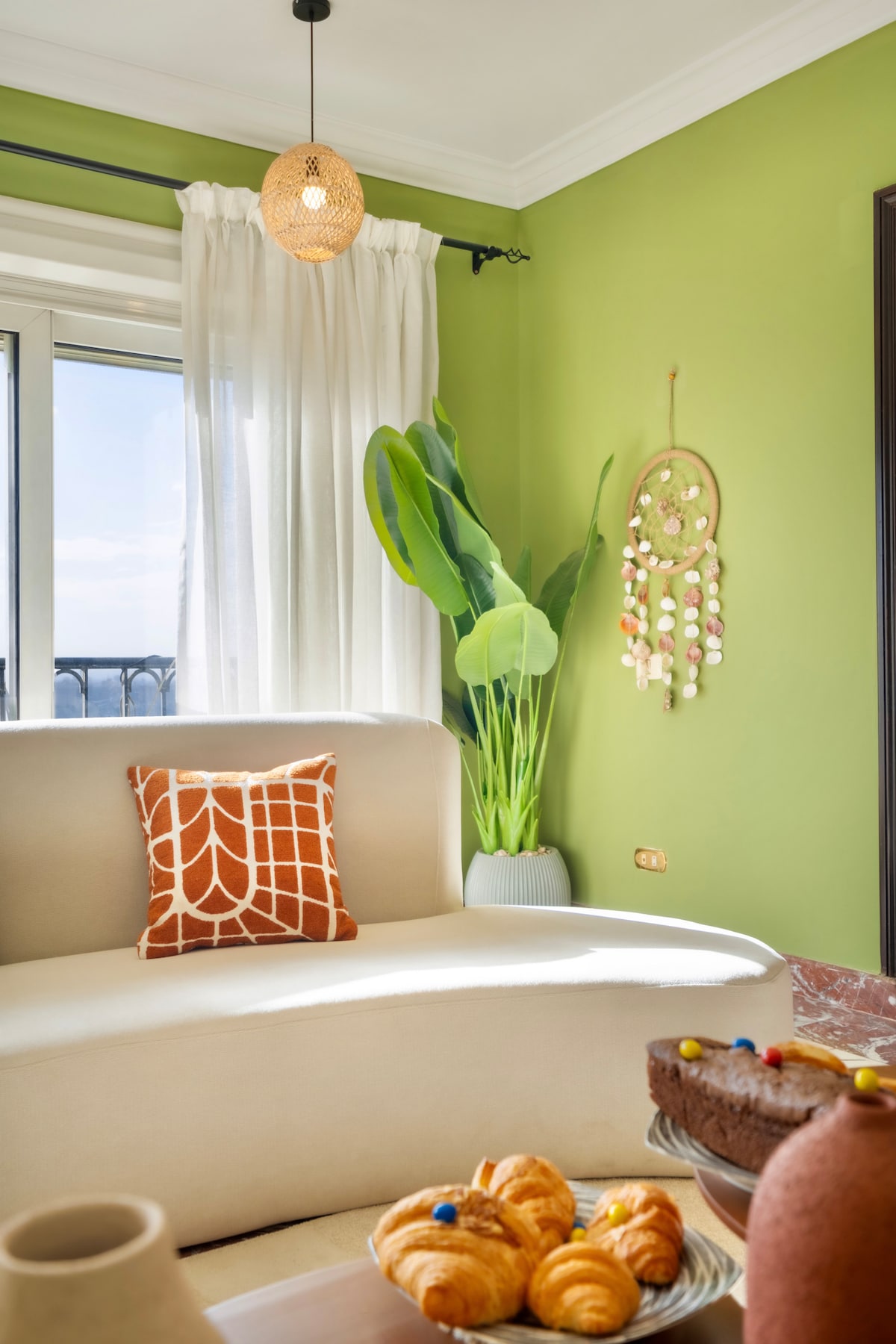 Bright and airy this apartment sleeps 6 people comfortably with its 3 bedrooms, 2 baths, and 2 balconies. Located in Cairo’s green lounge of Maadi, it lays within a short walking distance of the city's top dining and community spots This characterful and authentically Cairene apartment is decked out in vintage, antique, and handmade furniture and decor. It enjoys open treetop views, and is perched above Cairo's most popular bakery, meaning breakfast & coffee is only an elevator ride away.