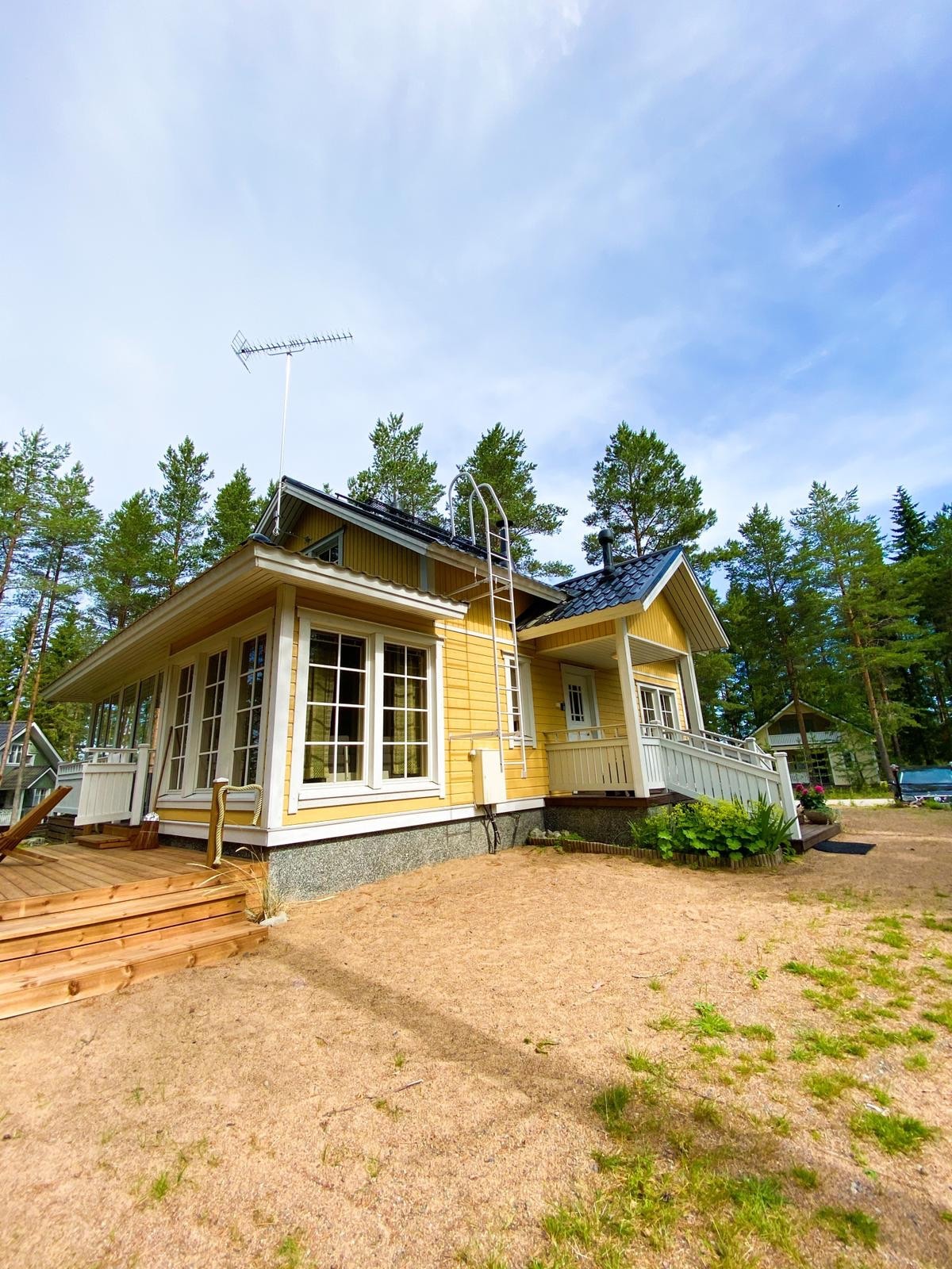 Mirna vila pored jezera. Površina: 80 m2 u zatvorenom prostoru + velika terasa i sauna na otvorenom Broj kreveta je 6 odvojenih kreveta. Sobe: Kuhinja, dnevna soba, 3 spavaće sobe, hodnik, kupatilo + sauna Objekti: kamin, frižider/zamrzivač, električni šporet i rerna, mašina za sudove, mikrotalasna rerna, aparat za kafu, kuvalo za vodu. Na imanju se nalazi još jedna sauna na plaži.