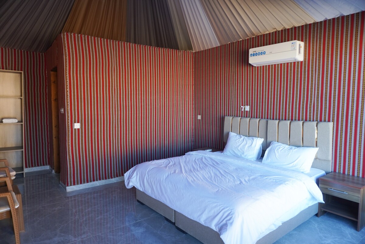 Otkrijte pravo beduinsko gostoprimstvo u srcu pustinje zaštićenog područja Vadi Rum. Šator sa privatnim kupatilom, toplom vodom i pogledom na pustinju i planine koji oduzima dah. - Doručak na bazi švedskog stola uključen u cenu - Organizujemo privatne ture džipom 4x4 – Tradicionalna beduinska večera sa žeravnikom (dodatno) - Mogućnost spavanja pod zvezdama - Planinarenje u pustinji - Izuzetno zabavne pješčane daske među dinama – Naš teren je ekološki održiv, napaja se solarnom energijom