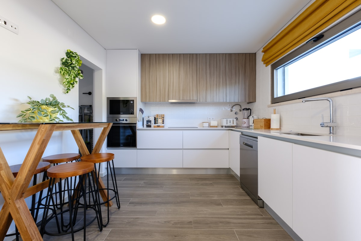 Opustite se u ovom mirnom i elegantnom prostoru. Predivno uređena kuća s 3 spavaće sobe u privatnom kondominijumu sa zajedničkim bazenom. Potpuno opremljena kuhinja u kojoj ćete se osjećati kao kod kuće. 10 minuta vožnje do nevjerovatne plaže Sesimbra i 40 minuta od Lisabona, u blizini svih sadržaja, besplatan parking na ulici. Sve sobe sa TV-om, Netflix-om i klima-uređajem za vašu udobnost. Lijepo ćete spavati u najboljim dušecima. Savršena kuća za nevjerovatan odmor u sunčanoj Sesimbri. Uživajte u boravku!