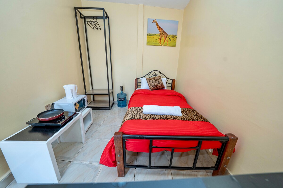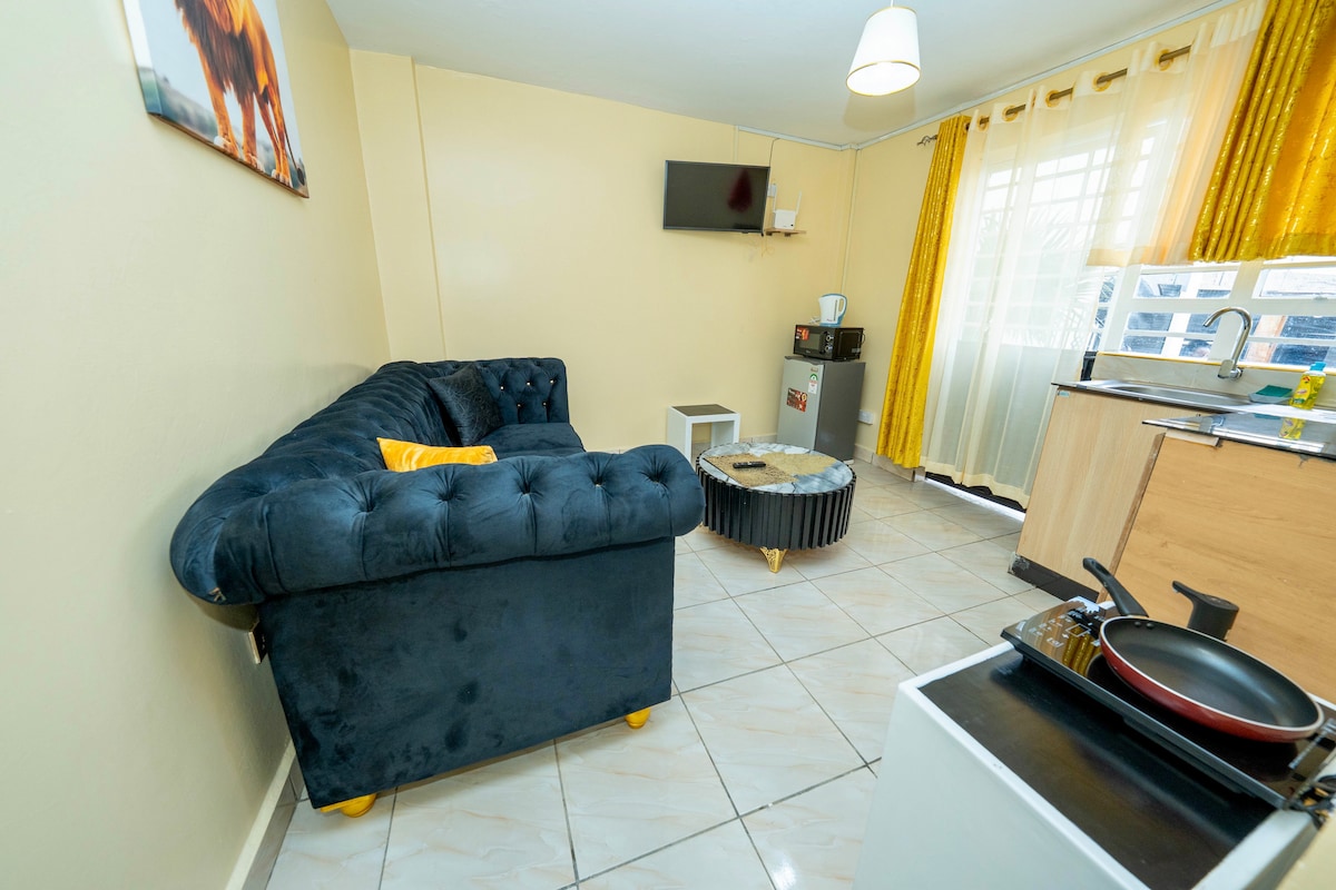 A stylish and cosy space, set in a secure residential neighbourhood. Located 7.5 Kilometers from Nairobi CBD and a 24 minute drive to the JKIA International airport. This space is perfect for a solo traveler.