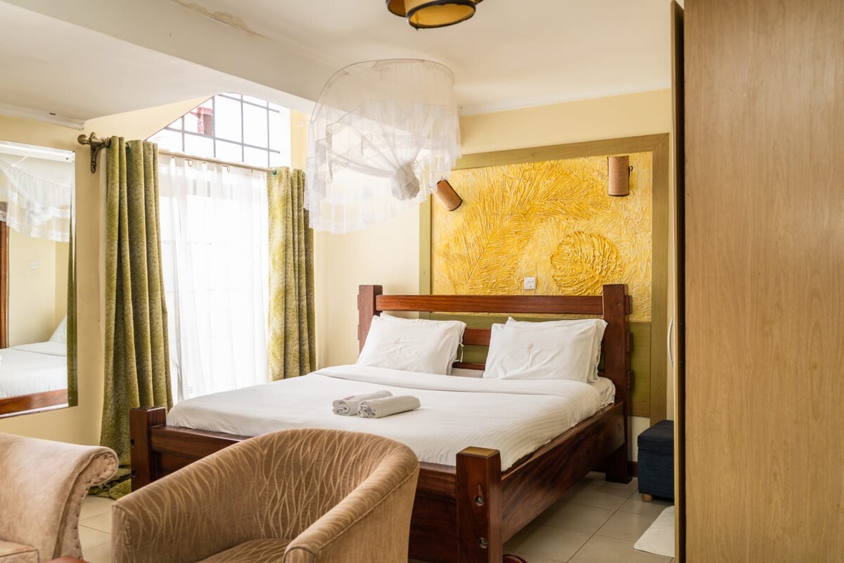 Karibu u svom udobnom studiju idealnom za presjedanje ili duže boravke. Samo 9,5 km do JKIA-e, 4,7 km do stanice SGR, 3,3 km do tržnog centra Gateway i 4 km do autoputa koji povezuje Vestlands, 16 km(naplaćuje se naplata putarine). Opustite se na privatnom balkonu s pogledom na bazen/uživajte u bazenu i teretani pored bazena, a sve je uključeno bez dodatnih troškova. Ima kuhinju, Wi-Fi, pametni TV, zvučni sistem, lift, besplatan parking i bezbjednost non-stop. Samostalna prijava je bezbedna čak i kasno noću. Uživajte u besplatnom kenijskom čaju i kafi.