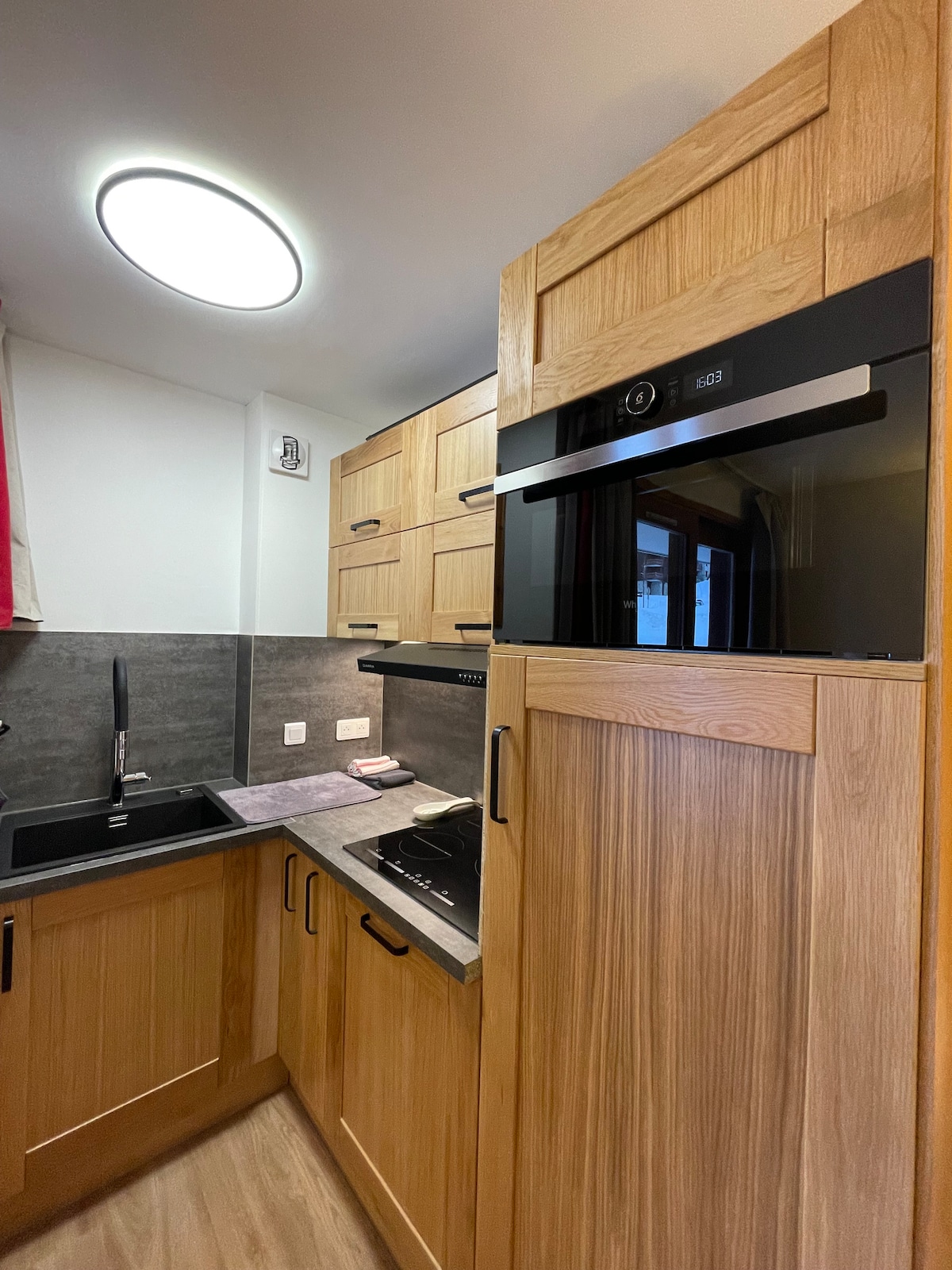 Studio Plagne centar u podnožju padina! 20 m2. Nalazi se u srcu odmarališta, u LE FRANCUSKOJ, direktan pristup prodavnicama i padinama Garsonjera 4 Pers Nalazi se na 1. spratu sa liftom Oprema: Čajna kuhinja: indukciona ploča za kuvanje, mikrotalasna rerna, frižider, Senseo Kupatilo: Kada Dnevni boravci: 140x200 kauč na razvlačenje, krevet na sprat 90x190, TV Balkon s pogledom na padine Ormarić za skijanje Parking uz naplatu zimi, besplatan ljeti Čaršavi i peškiri nijesu obezbijeđeni Čišćenje treba da obavite vi 07/2025: novi kauč na razvlačenje