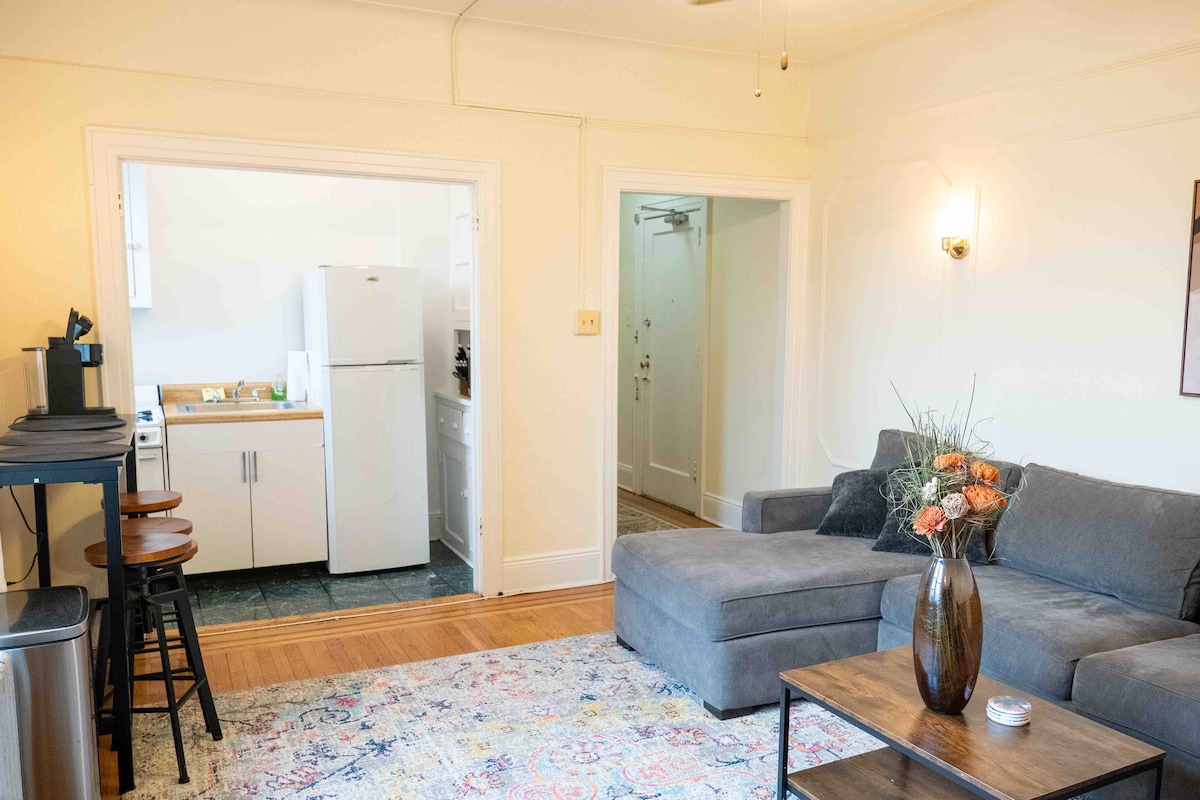 Experience timeless New York charm at The Mansfield Residence, a storied building that once echoed with the glamour of Gatsby-era soirées. This beautifully appointed apartment blends old-world character with contemporary comfort, creating an ideal retreat for families or close friends. Two connected bedrooms are divided by a room partition, offering both intimacy and functionality for your Midtown stay.