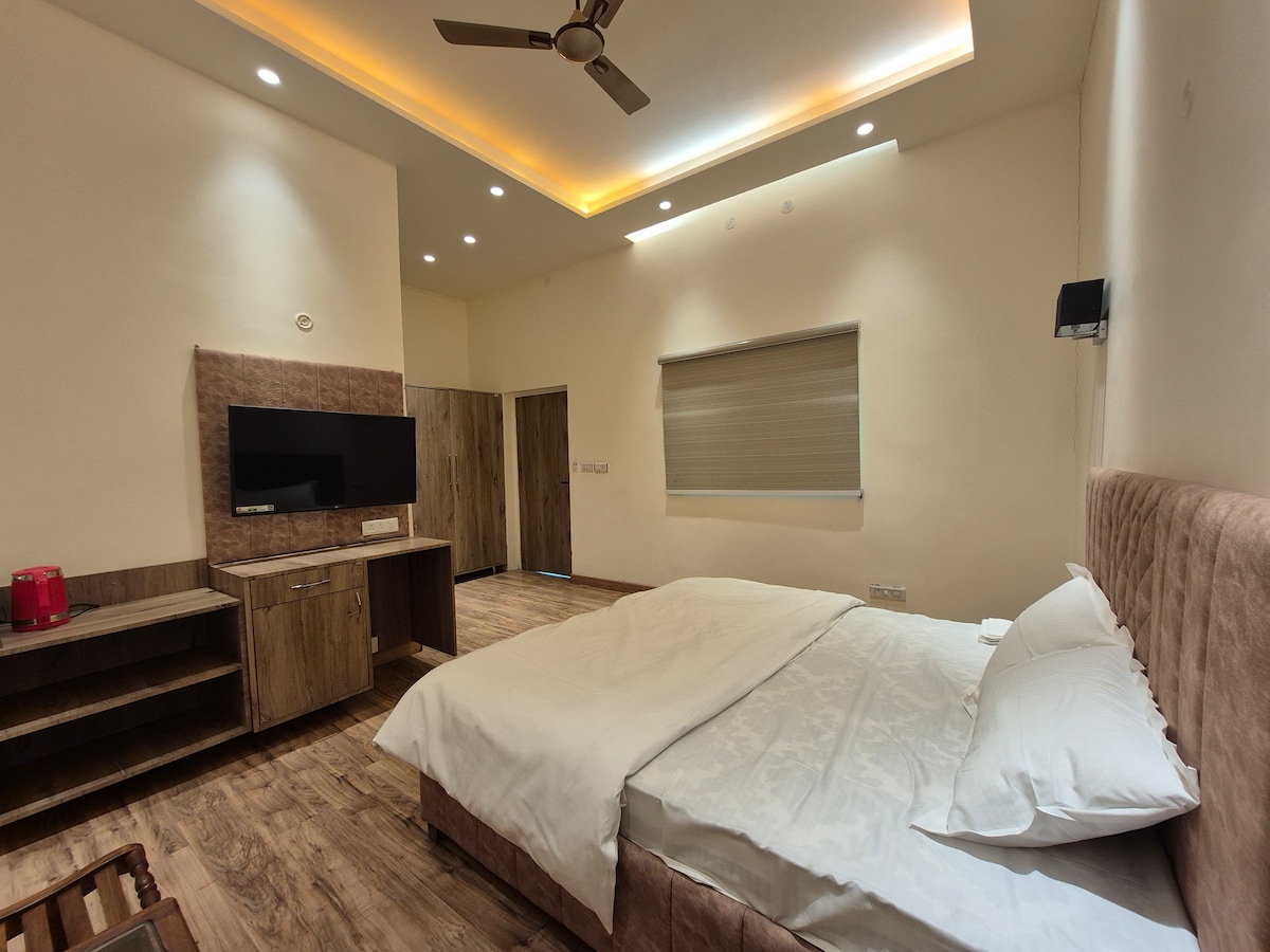 Dobro došli u dvosoban stan sa kupatilom , dnevnim boravkom, trpezarijom, ostavom i potpuno opremljenom čajnom kuhinjom savršenom za porodicu, prijatelje, turiste ili poslovne putnike. Uživajte u prostranom rasporedu sa privatnim balkonom kako biste se opustili i opustili. Opremljen modernim sadržajima, uključujući Wi-Fi , udoban namještaj. Naš 2BHK stan obezbjeđuje boravak bez muke. Nalazi se na autoputu Hosiarpur . Aerodrom Adampur je udaljen 18 km, a isti put vodi prema Himačal Pradešu zbog turizma.