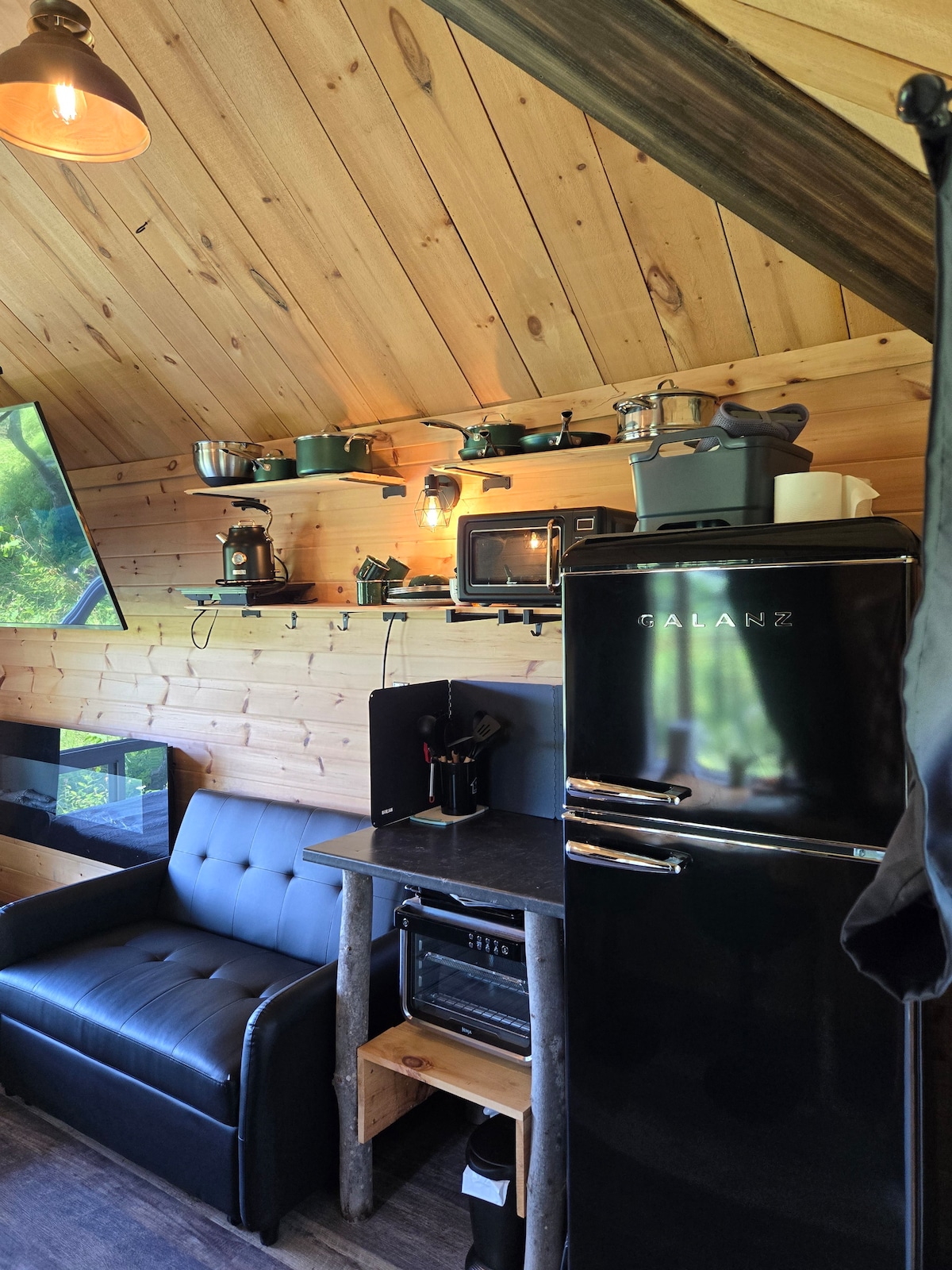 Escape to this private off-grid retreat, nestled high in the trees overlooking the natural beauty of the Moira River. This elevated nature shelter provides a cozy, rustic space for guests seeking solitude, adventure, or a peaceful getaway. This is a multi-use nature retreat designed to provide shelter and relaxation in a secluded setting. Guests are welcome to rest and recharge in the space, enjoying the warmth of the wood stove while taking in the peaceful surroundings