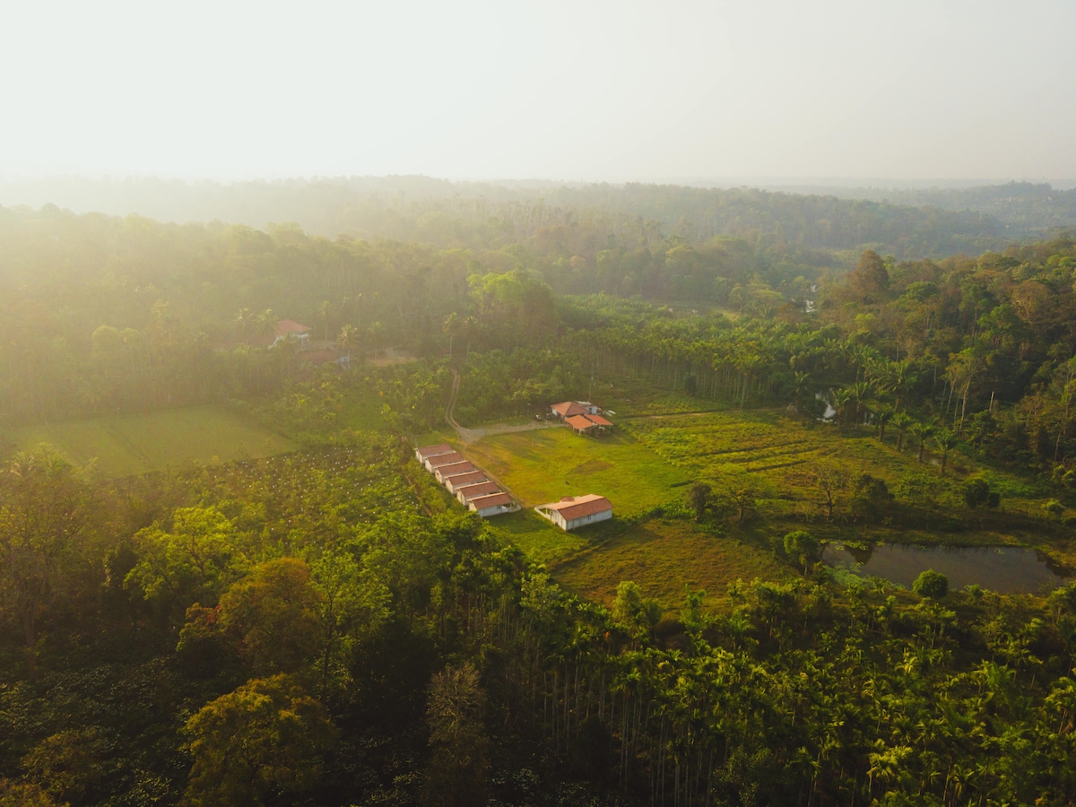 OPEN-WINDOW COTTAGE IN COORG Otkrijte savršen odmor u Koorgu u ovoj seoskoj kućici otvorenog prozora smještenoj na mirnom imanju od 70 hektara. Idealna za rad na daljinu, odmor u prirodi ili slikovit odmor, ova šarmantna seoska kuća iz 1968. godine kombinuje klasičnu privlačnost Koorga sa modernom udobnošću. Ima dvije prostrane spavaće sobe s kupatilima, brzim Wi-Fi mrežom i radnim stolovima, što ga čini udobnim i produktivnim mjestom za boravak u srcu mirnih brda Koorga.