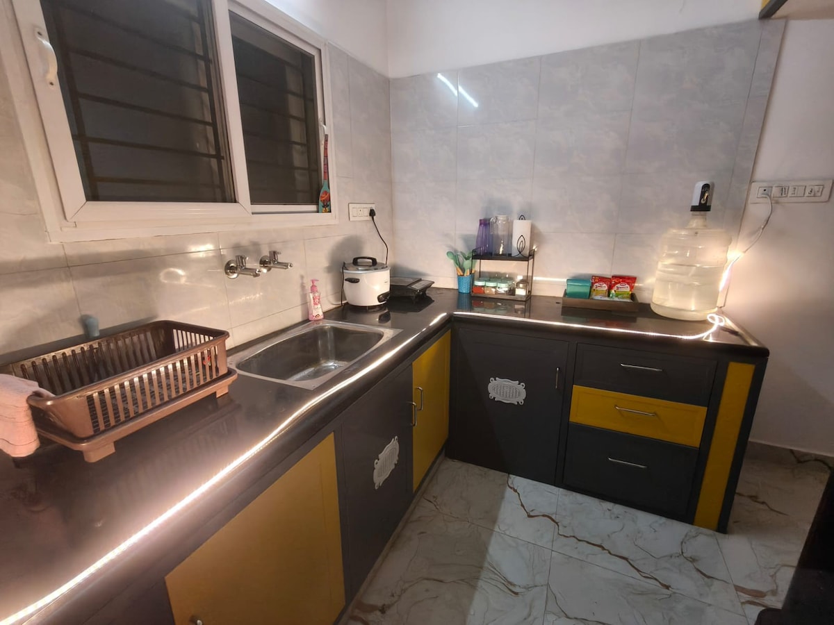 Naš šarmantni dvosobni apartman sa liftom, potpuno je namješten i nalazi se u mirnoj, otmjenoj četvrti. Može se pohvaliti potpuno opremljenom kuhinjom, udobnim dnevnim boravkom i privlačnim spavaćim sobama. Moderni sadržaji uključuju 40 Mbps Wi-Fi, klima-uređaj opšteg brenda, voda za piće, Smart TV od 47 inča, rezervno napajanje. Idealno smješten, udaljen je 15 minuta od aerodroma, 5 minuta od tržnog centra Phoenix, trgovačkog centra Čenai, IIT-a, Univerziteta Ana,vrhunskih hotela/ 2 minute od metroa. Parovi su dobrodošli. Najbolja i mirna lokacija! 50% popusta na spa
