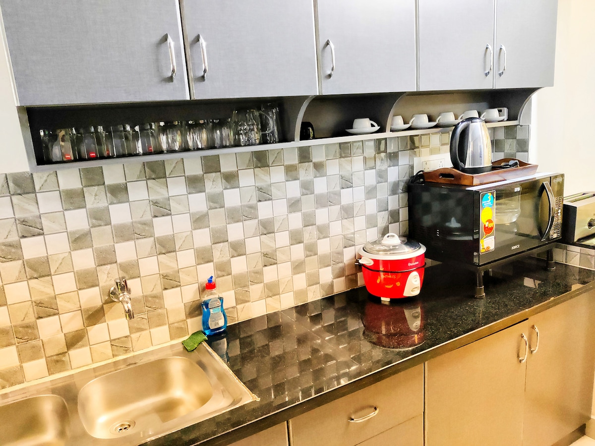 Have fun with the whole family at this stylish place. Town Space is a budget friendly Service apartment situated at Moulivakkam, near Porur. Each apartment has two bedrooms (120 sq.ft) with a big living room and a kitchen. Each bedroom has a queen size bed with attached bath. The living cum dining hall has a sofa and dining table arrangement suitable to accommodate 4 to 6 guests. The kitchen is provided with an induction stove and basic vessels to make instant foods like maggi, tea or coffee.
