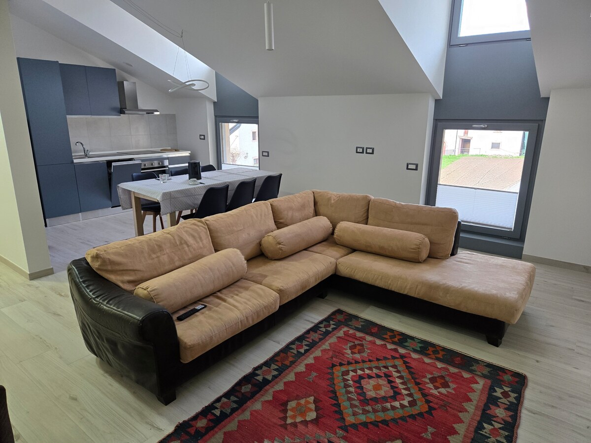Besplatna Trentino kartica za goste!! Veliki stan od 125 kvadratnih metara na dva sprata, 3 sobe i 2 kupatila, veoma veliki dnevni boravak kauč TV 55 inča, prostor za opuštanje sa sofama, kupatilo sa dvokrevetnom spavaćom sobom rezervisano na drugom spratu Potpuno opremljena kuhinja Dovoljno privatnog parkinga, WI-FI, grijan i rashlađen. Idealno kao baza za vožnju biciklom (prisutni su novi bicikli) ili penjanje po liticama i planinarskim šetnjama.