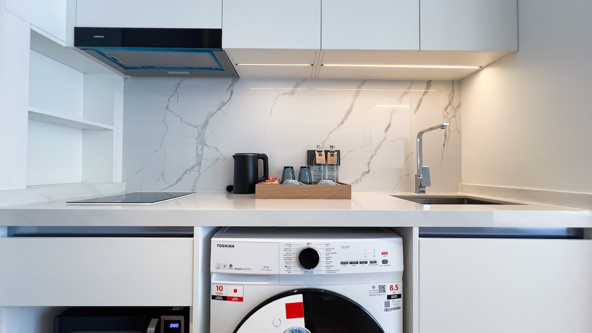 Welcome to Kora Time | 50m Beach · Direct Pool · Washer, a stylish and efficiently designed 35 sqm ground-floor suite just steps from Bang Tao Beach. Located only 50 meters from the beach, this one-bedroom unit offers direct access to the swimming pool from your private balcony — simply open the door and step straight into the water. Perfect for couples or solo travelers looking for comfort, privacy, and convenience in a peaceful resort setting.