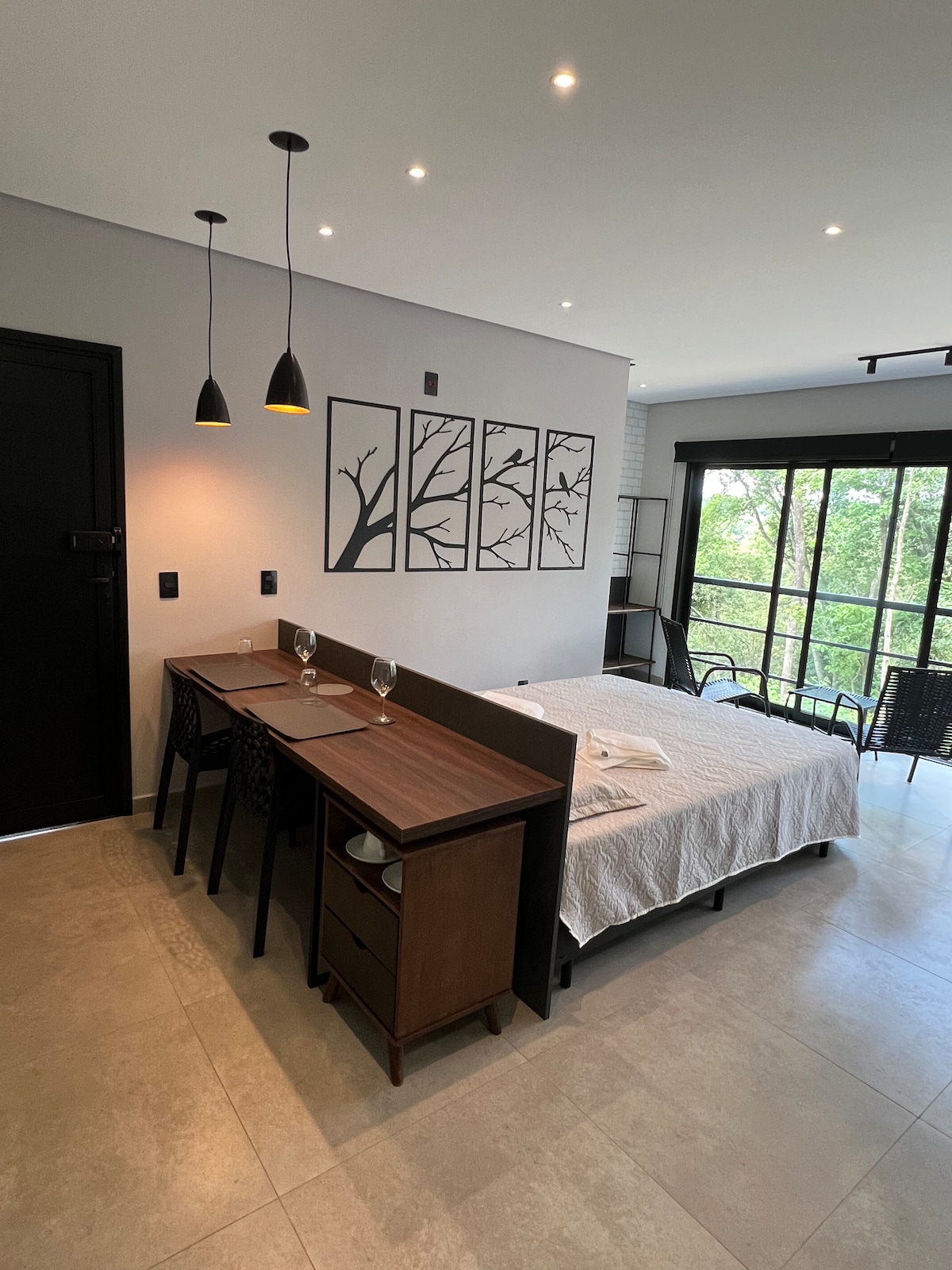 Opustite se u ovom udobnom i elegantnom prostoru, smještaju za one koji žele da budu u blizini međunarodnog aerodroma Guarulhos, koji je udaljen 17 minuta vožnje automobilom, kompletnog prostora, u blizini pijace, pekare i apoteke. Imamo i krevetac za bebe, ako je potrebno, kontaktirajte nas i mi ćemo ga postaviti.