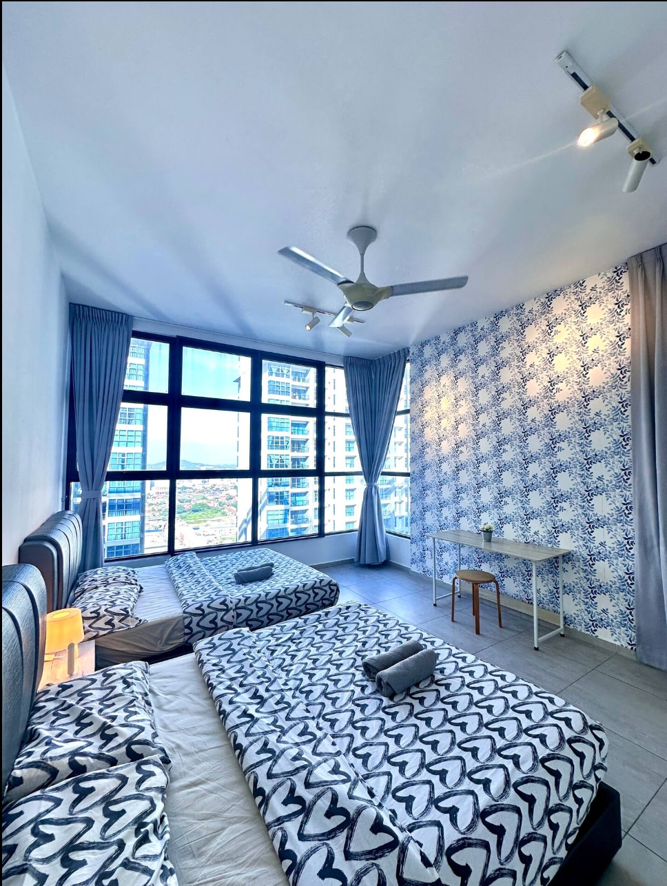 ★Two Bedrooms, 1050Sqft, 8 Beds ★ 55" TV pre-logged in with our Netflix account ★Highspeed Internet (Unlimited Usage) ★Security access card, 24 hours secured by guards ★Theme Park Pool, Child Playground. ★Grocery Stores in the building and Restaurant nearbys and serene space.