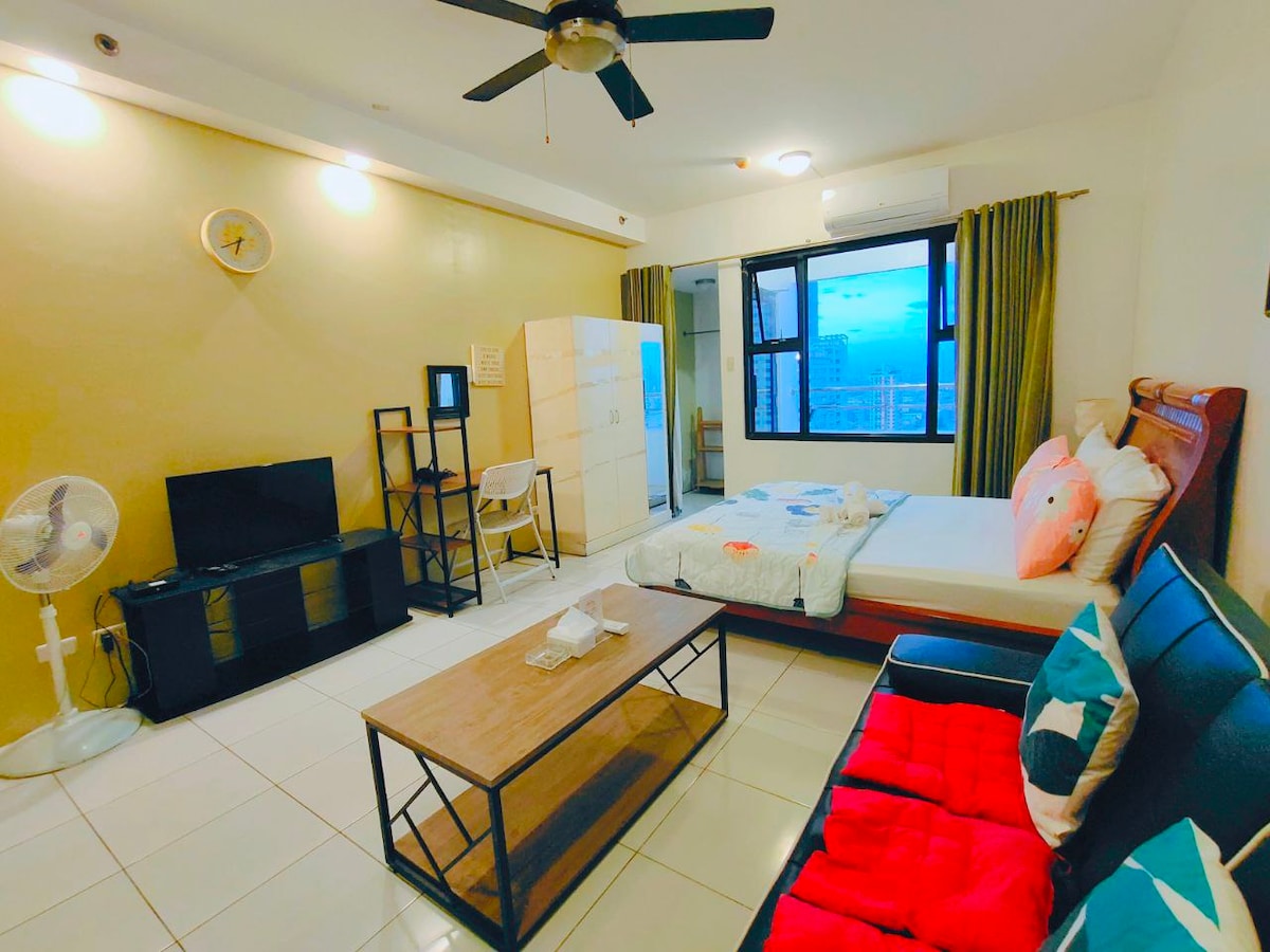 Minimalistički udoban smještaj u Makatiju Odsjednite u minimalističkom, hotelskom stanu u smještaju Air Residences Makati! Naš novouređeni, izuzetno čisti prostor nudi veliki bračni krevet sa brzim pouzdanim Wi-Fi-jem, Smart TV sa Netflix-om, potpuno opremljenu kuhinju i moderno kupatilo. Uživajte u salonima, bazenima, travnjaku za jogu i na odličnoj lokaciji u blizini tržnih centara i restorana.