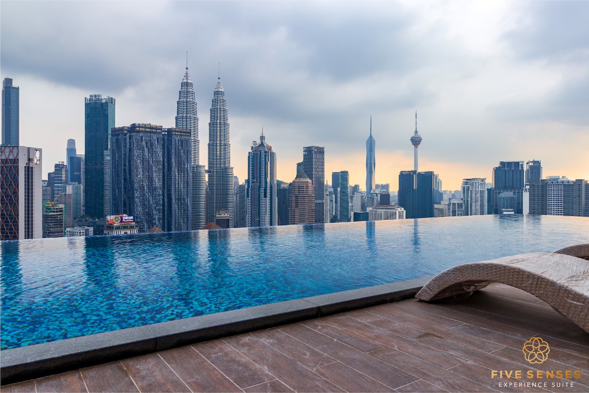 KLCC pogled sa elegantnog potkrovlja 3 kreveta sa kadom i krovom od bazena