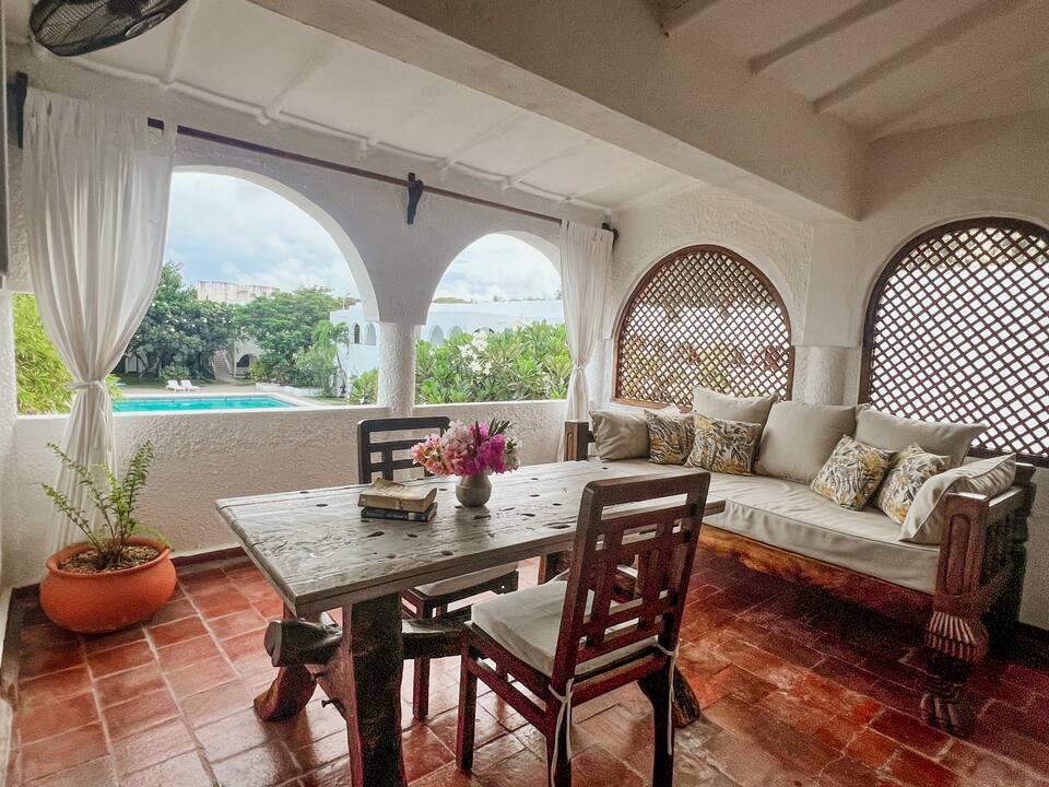 To je tradicionalna dvospratna svahili seoska kućica koja je dio mirnog kompleksa sa čuvarima, vrlo ljubaznim osobljem i dva lijepa bazena oko kuće. Kompleks se nalazi u mirnom području Malindija, 100 metara od mirne plaže bez gužve. Postoji mnogo supermarketa, noćnih klubova, barova, restorana, prodavnica. Na raspolaganju vam je prizemlje seoske kućice. Na Airbnb-u se nalazi i drugi nivo. Napomena! Trenutno se renoviraju kuće jednog komšije u kompleksu.
