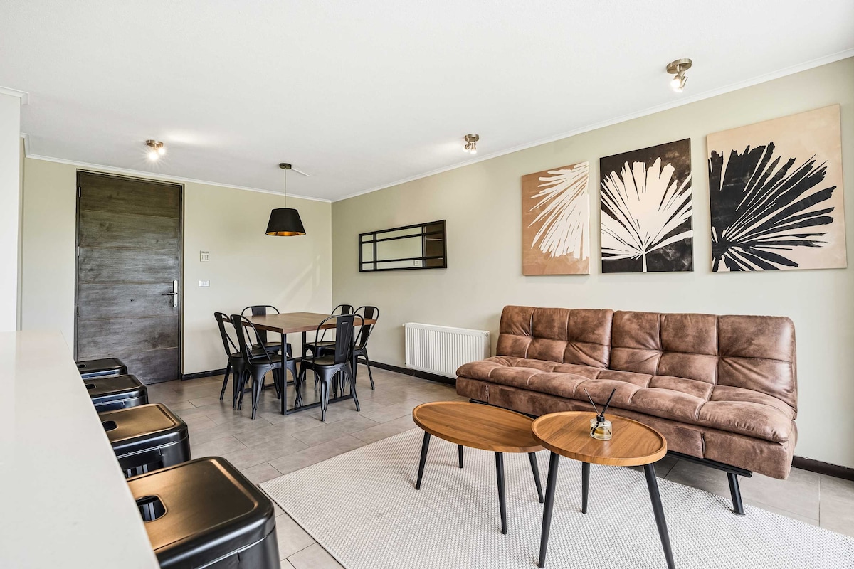 Uživajte u elegantnom doživljaju u ovom modernom smještaju na samo nekoliko koraka od parka Arauko! Opremljen svime što vam je potrebno za boravak, uživajte u kuhinji, rerni, radnoj površini, frižideru i mikrotalasnoj pećnici. Možete da uživate na njenoj velikoj terasi sa panoramskim pogledom, kao i na bazenu na krovu. (Uz rezervaciju.) Boravite u jednom od najmodernijih stanova u tom sektoru; ima ulaze putem QR kodova i numeričkih ključeva za veću bezbjednost i samostalnost.