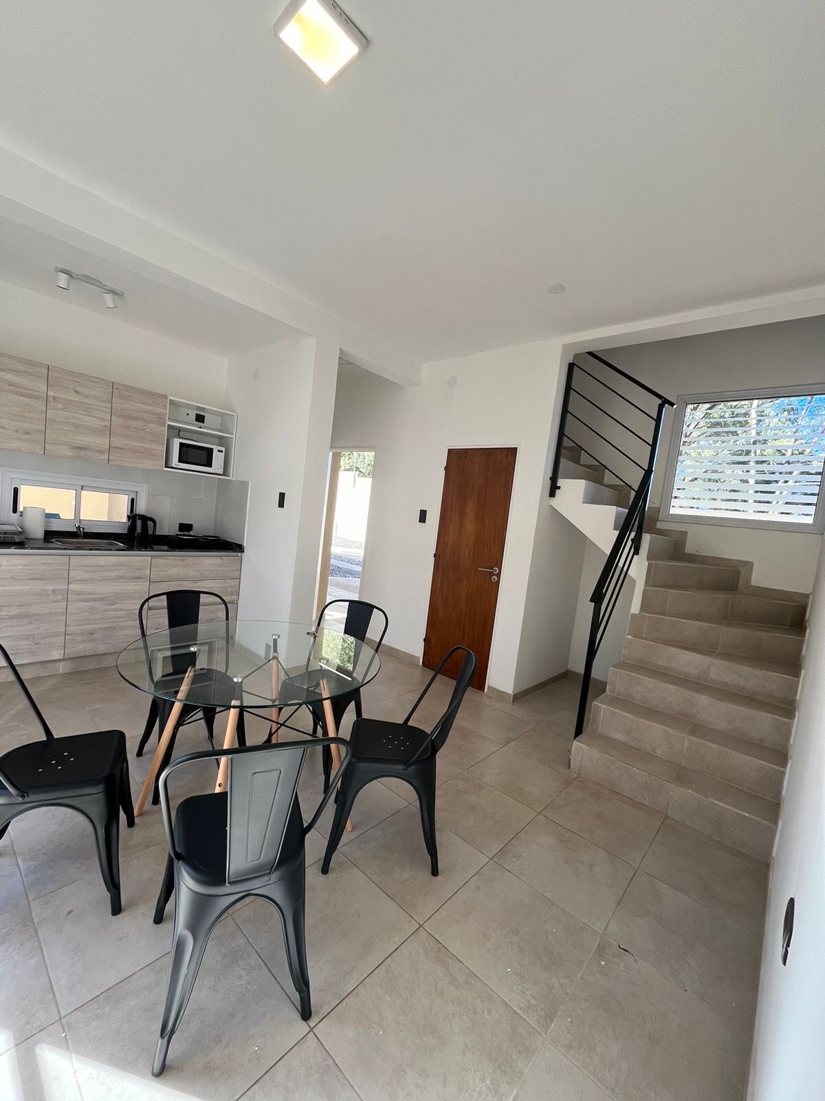 Departamento amplio y luminoso, ubicado en una zona céntrica y tranquila de Chilecito, a pocas cuadras de la plaza principal. Cuenta con dos dormitorios, uno con cama matrimonial y otro con dos camas individuales, además de un cómodo sofá cama en el área de estar. Dispone de cocina comedor totalmente equipada, baño completo y todos los ambientes cuentan con aire acondicionado frío/calor. El departamento se encuentra en planta alta, con acceso por escalera. Incluye cargadores USB y USB-C.