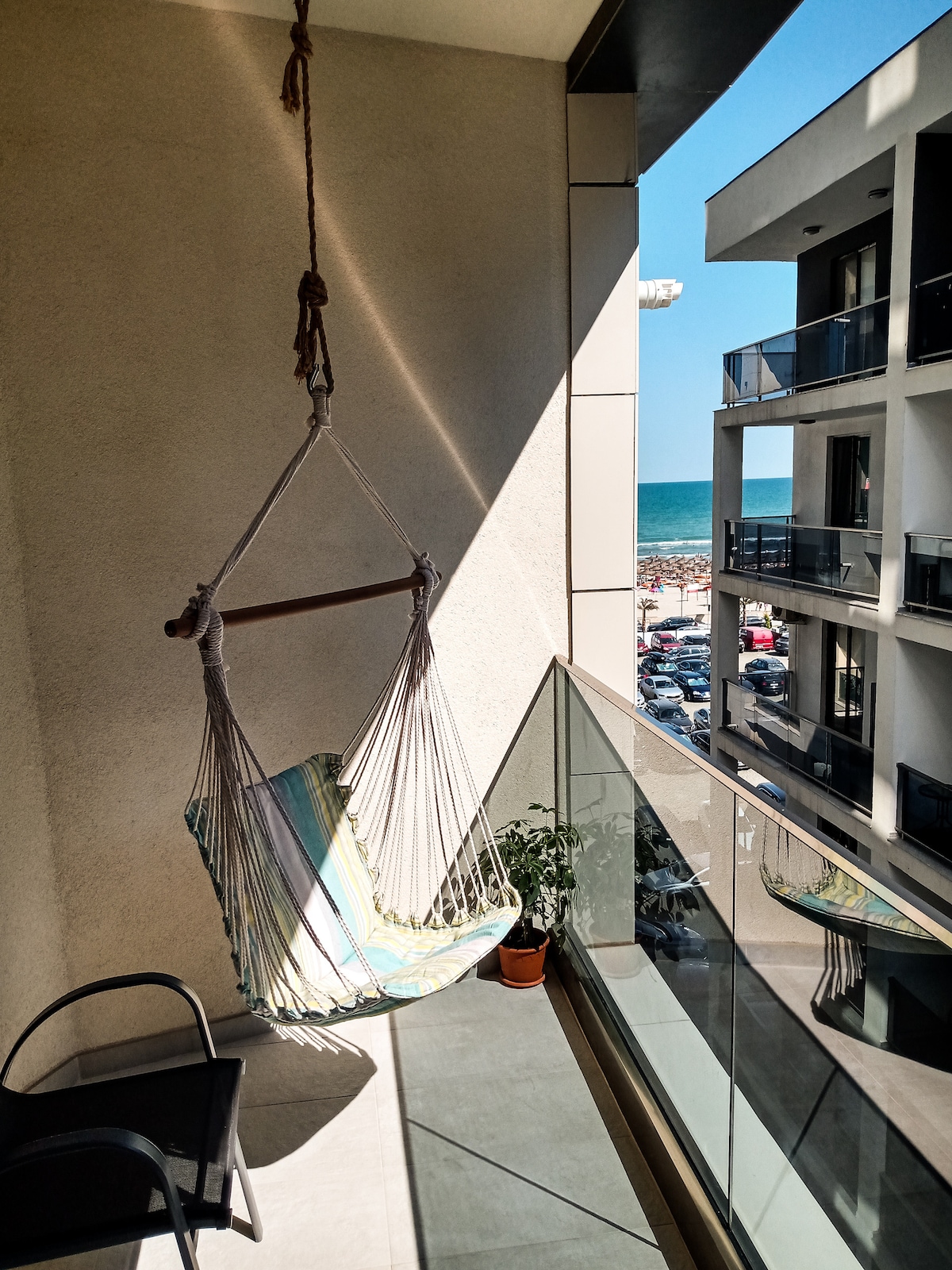 Distrează-te cu întreaga familie în acest loc elegant. Relaxati-va pe balconul cu vedere la mare. Apartamentul este situat intr-un resort pe primul rand de cladiri la mare, la 5 metri de plaja. Dispunem de parcare proprie, cu bariera automata.
