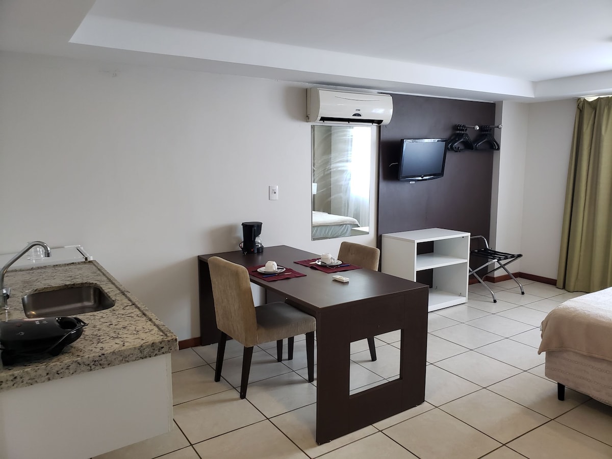 Uživajte u uživanju u Žoao Pesoi, na odličnoj lokaciji, ispred mora i u srcu Tambaua. Barovi, restorani, supermarketi, apoteke i zanatska pijaca, sve za šetnju. U stanu od 70 m², balkon, udoban dnevni boravak sa kablovskom televizijom, pravilno opremljena kuhinja, apartman i druga spavaća soba, oba sa kućnom kancelarijom. Wi-Fi odličnog kvaliteta i klima-uređaj u svim sobama. Šetnja ili rad, vaš najbolji smještaj!