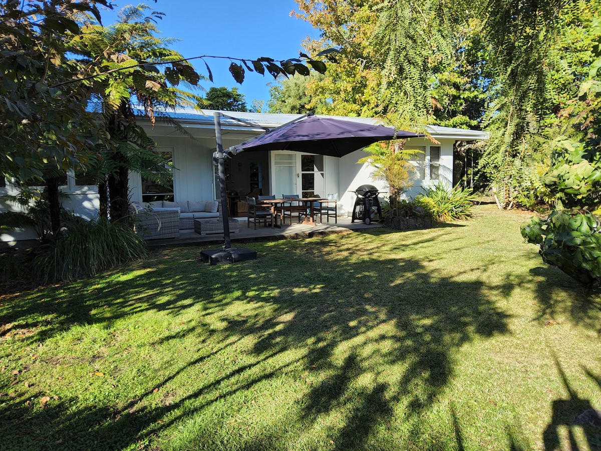 Fantastična bašta i kupatilo na otvorenom. 15 minuta hoda do grada i jezera. Recenzije s 5 zvjezdica od preko 600 gostiju Idealno za parove • Natkriveno dvorište, veliki vanjski luster i trpezarija • Spoljašnje kupatilo od livenog gvožđa . Očaravajuća zajednička bašta, povrće, mekani pilići, voćke . Dobro opremljena kuhinja i mašina za pranje veša • Dostupan je kajak • Besplatan neograničen Wi-Fi . Pokriveno parkiranje izvan ulice . Lak pristup mnogim atrakcijama Taufoa . Muesli i mlijeko za doručak