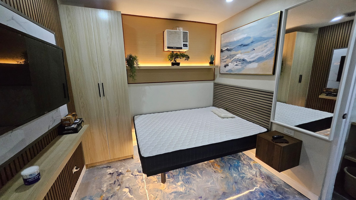 Studio jedinica može da primi 4 odrasle osobe 1 dijete. 📍Acqua Residence Mandaluyong Prijava i odjava u 14:00/12:00 - 1 bračni krevet (širine 150-179 cm) - 1 dodatni dušek na podu dvostruke veličine - BESPLATNO korišćenje bazena - BESPLATNA kafa i sredstva za higijenu - BESPLATNA upotreba začina - Wi-Fi/ Smart TV sa Netflix-om - Društvene igre - Pribor za jelo - Indukcioni šporet - Električni čajnik - Mikrotalasna rerna - Frižider - Aparat za kuvanje pirinča - Obezbijeđena voda za piće - PARKING koji se PLAĆA (400php + cijeli boravak) samo po principu „ko prvi usluži”