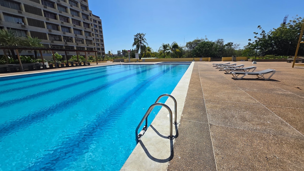 Nema Airbnb-ovih provizija - ono što vidite je ono što plaćate! Probudite se s morem ispred sebe! Ovaj svijetli stan u Pampataru nalazi se na odličnoj lokaciji okrenutoj prema plaži i pored teretane i kazina. Opustite se u beskonačnom bazenu u kondominijumu ili uživajte u zalasku sunca sa svoje privatne terase. Idealno za 4 osobe, sa Wi-Fi mrežom, kompletnom kuhinjom i parkingom. Vaš savršen odmor u Margariti počinje ovdje.