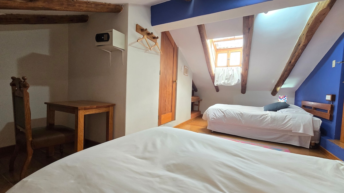 Mini departamento con terraza y vista en Ollantaytambo Te invitamos a vivir la experiencia en este espacio lleno de encanto, ideal para 3 personas que buscan comodidad, tranquilidad y conexión con la naturaleza. - Habitación cómoda de 2 camas - Escritorio de trabajo - Baño privado con agua caliente - Cocina equipada - WiFi - Puerto de carga USB - Terraza con vista panorámica del Valle al pueblo - Pet friendly - Estacionamiento gratuito en las afueras - Cámara de vigilancia pública