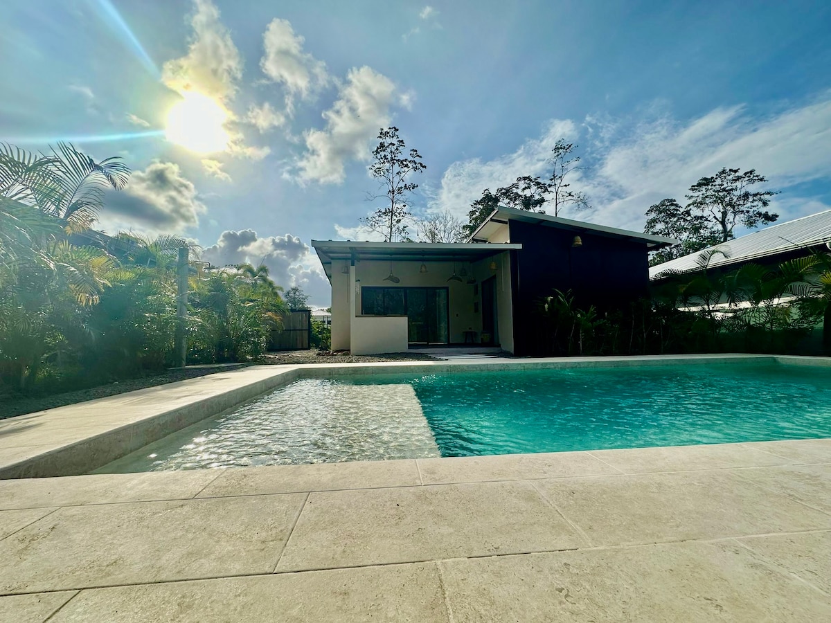 Una casa frente al mar, con piscinas naturales, la edificación reciente con mucho encanto y al estilo Caribeño contemporáneo y muy fresca. Es de una sola planta. Amplias zonas verdes completamente cercadas. La propiedad cuenta con una Casita para huéspedes en el jardín, con un dormitorio extra, sala de estar y baño. Ventiladores . Amplias zonas verdes rodeadas de bosque tropical que alberga diversidad de flora y fauna autóctona, mariposas, monos congo, osos perezosos, iguanas, etc...