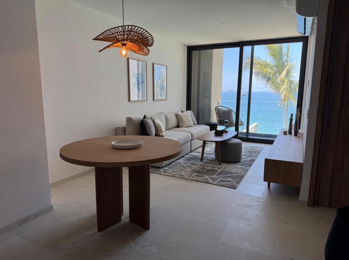 Uživajte u apartmanu na plaži u srcu Manzanilja. Prizemlje sa direktnim pogledom na grejane bazene i na samo nekoliko koraka od mora. Idealno za porodice ili parove, sa 2 spavaće sobe, klima-uređajem u svim prostorijama i svime što vam treba za opuštanje. Uključuje stolice, sto, frižider i suncobran za dane na plaži.