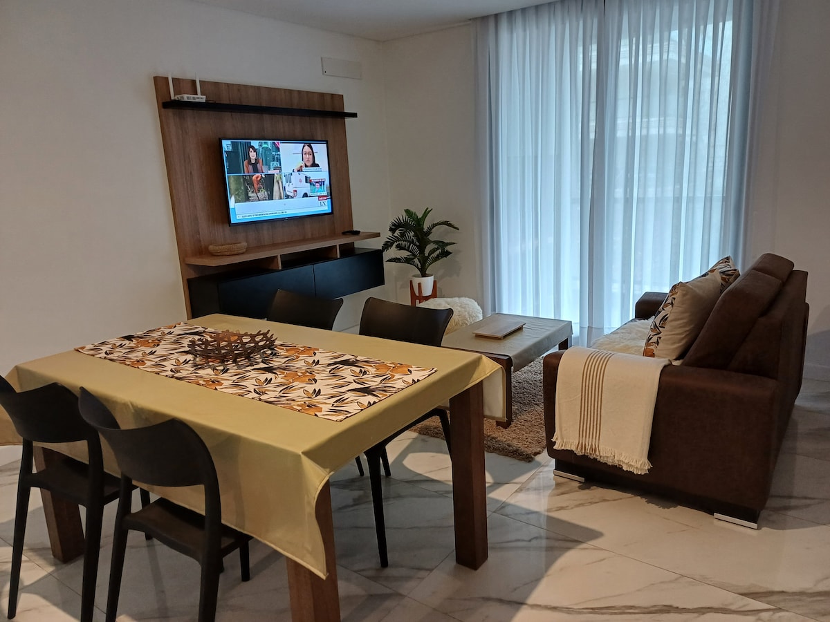 Impecable monoambiente recien instalado , muy luminoso. Detalles de categoria, cuenta con equipo de aire frio/ calor, baño con hidromasaje., TV plana con wifi gratis, microondas , pava electrica, tostadora, cocina con horno, heladera con freezer y todos los utensillos de cocina. Se proporciona toallas y ropa de cama (1 juego) Para estadias largas se puede ofrecer recambio con costo extra. Cortinas black out. Cochera privada dentro del edificio. Laundry. Ideal para dos adultos.
