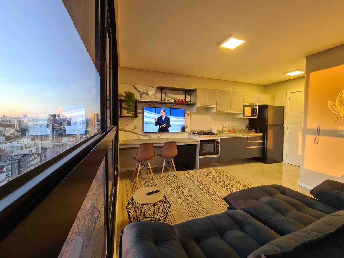 Puni stan dostupan u centru Passo Fundoa. Dnevna soba, kuhinja sa uslužnim prostorom i spavaćom sobom. Veliko kupatilo i balkon sa roštiljem. Dostupan je i prostor za rad (sto i stolica). U blizini su Colégio Bom Conselho i autobuska stanica.