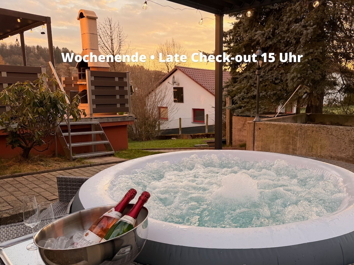 U privatnoj atmosferi možete uživati u miru na selu i doživjeti luksuz lične hidromasažne kade, kao i saune u susjednom području do vrta nalik parku. Samo 10 minuta od A5, možete napraviti wellness stop sa nama kada prolazite! U blizini ćete pronaći mnoge prelijepe izlete, kao i dobre gastronomske sadržaje. Savršeno ako želite da pobjegnete od gradskog života. Bez obzira na to da li je sezona hladna ili topla, ovaj prostor vas poziva da se opustite.