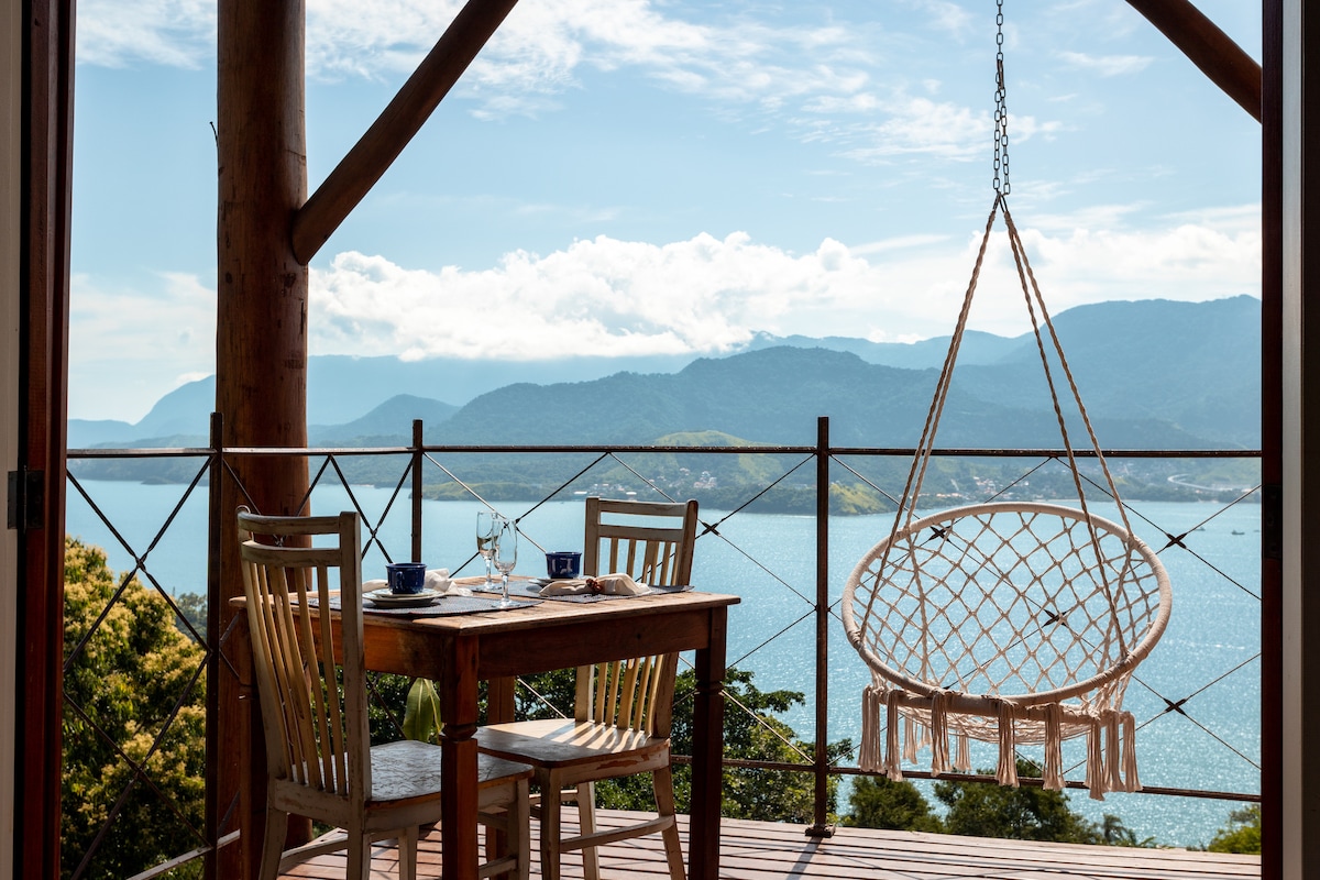Mirante da Jana Ilhabela Jedinstveni smještaj idealan za one koji vole prirodu, traže privatnost, spokoj i udobnost. Detalji čine smještaj izuzetno prijatnim i prijatnim, pružajući veoma udoban boravak. Postoji samo 6 jedinica, na dvije parcele: Morska strana: DVIJE PLANINSKE KUĆE okrenute prema bazenu, s pogledom na more i hidromasažnom kadom. Planinska strana: kondominijum sa ČETIRI KUĆE sa hidromasažnom kadom (ovaj smještaj) nemaju pogled na more, pristup bazenu sa nevjerovatnim pogledom!