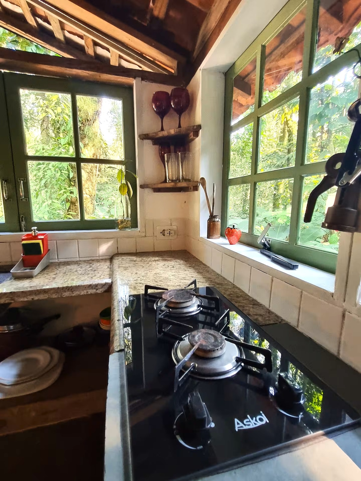 Umjetnički izgrađen bungalov u svakom detalju... otvorena kada za šumu sa staklenim plafonom pruža osjećaj da ste uronjeni u prirodu, sa stogodišnjim prednjim dijelom Figeire i mnogim pticama...intimno i gostoljubivo u vezi sa prirodom u kontaktu sa ovim rezervnim područjem Atlantske šume. Drugi topli tuš se nalazi na otvorenoj terasi za šumu i ukusan je danju ili noću sa zvijezdama, nebom i mjesečinom.