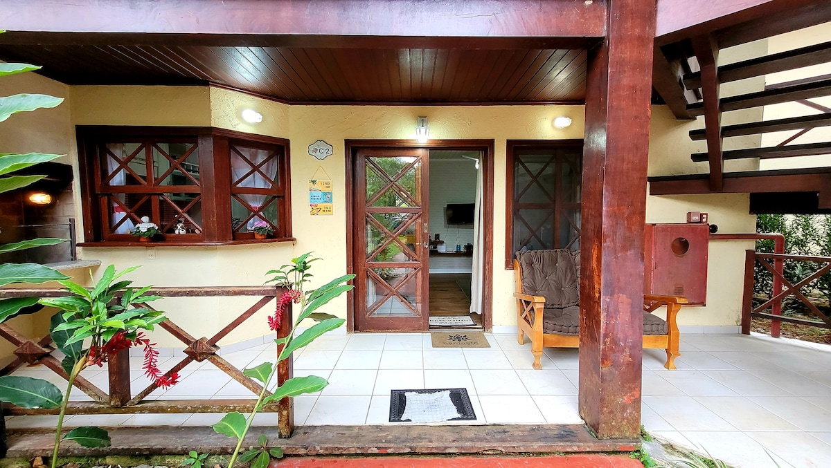 Kuća sa stilom i udobnošću , apartman sa 5 zvjezdica (plinski tuš i velika kada za dvoje sa hidromasažnom kadom, klima-uređaj, plafonski ventilator, kvalitetan prekrivač od kraljice, pamučne čaršave od 400 žica,TV, brzi Wi-Fi - dva provajdera, balkon sa mrežom, pogled na šumu Atlantika i prostrani ormar. Za vašu dodatnu udobnost - kamin, kompletna kuhinja i kiosk-churrasqueira, bazen za dvije saune i privatnu rijeku. Ograđena bašta za vašeg kućnog ljubimca. Mirni kondominij, jednostavan pristup plažama.