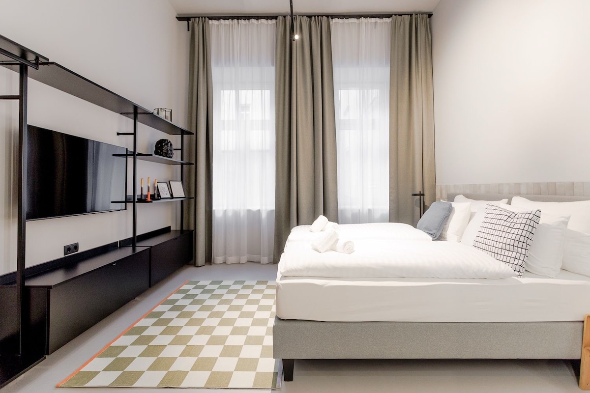 Ovaj novouređeni dizajnerski apartman sa terasom nalazi se u centru 7. okruga iza muzeja Museumsquartier u srcu Beča! Do svih znamenitosti Beča možete doći peške. Šarmantna strana ovog dela Beča pod nazivom Spitelberg otkriva se kroz mnoge male kafiće, barove, galerije i nezavisne prodavnice. Sledeća stanica metroa „Volkstheater“ tri minuta hoda. Napomena: samo za nepušače. Zabave nisu dozvoljene! Kućni ljubimci su dozvoljeni na zahtev.