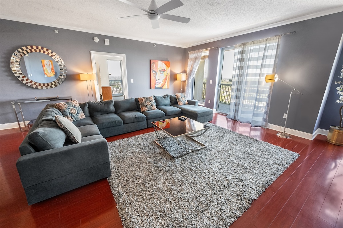 Bring the whole family to this wonderful ocean front condo in the sky with lots of room for sun and fun. Enjoy the breathtaking long range ocean and beach views from the balcony and living room. This High End Luxury condo boasts 4 bedrooms with 2 Master suites, a fully stocked large kitchen and in unit laundry. The living room is wide open and has plenty of seating on the wrap around comfortable couch and large flat screen TV for your sporting event or movie experience.