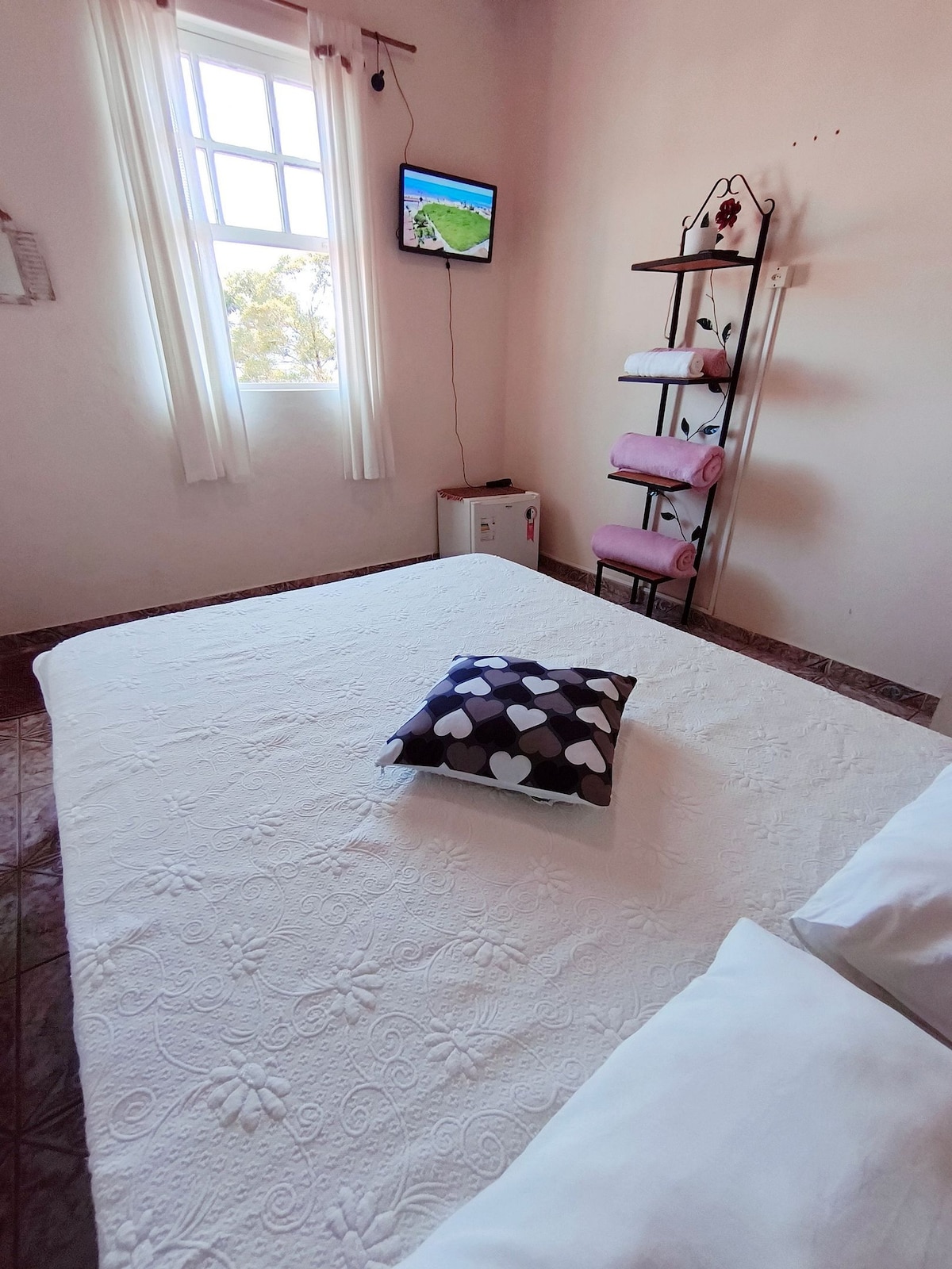 Esta acomodação elegante é perfeita para viagens, sendo um quarto, sala, sofa (cama), cozinha com uma vista voltada para as montanhas, um banheiro e oferecemos um café da manhã de acordo com os gostos dos hospedes, e temos tambem variedades de alimentos na geladeira a parte !