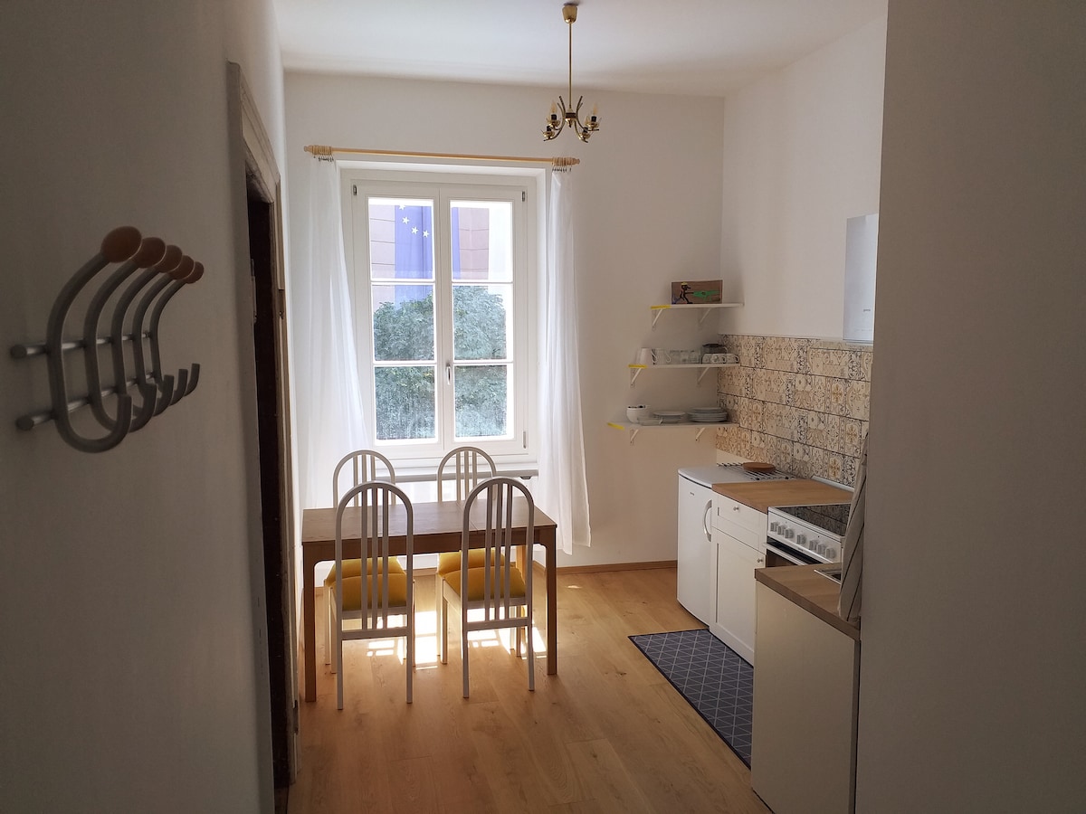 Potpuno novi renovirani i lijepi potpuno namješteni stan** * koji se nalazi u staroj istorijskoj zgradi u najpopularnijoj ulici u srcu Maribora, sa odličnim restoranima, barovima i kafićima. S druge strane, u mom smještaju ćete pronaći dovoljno mira. Dobra hrana, piće i ambijent su mi zaista važni i želim isto za svoje goste.