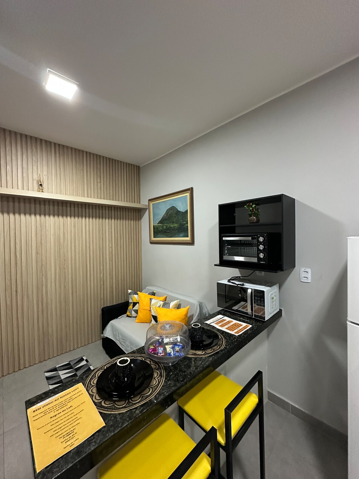 Sobre o imóvel: - Studio com 25m²; - De 12 a 15 minutos caminhando até à praia; - Garagem privativa; - Acomoda confortavelmente até 3 pessoas; - Varanda espaçosa. Destaques: - Wi-fi de alta velocidade; - Ar condicionado e ventilador de teto para seu conforto; - Smart TV; - Cozinha equipada com cooktop por indução duas bocas, forno elétrico, microondas, air fryer, sanduicheira, cafeteira dolce gusto, cafeteira elétrica e liquidificador.