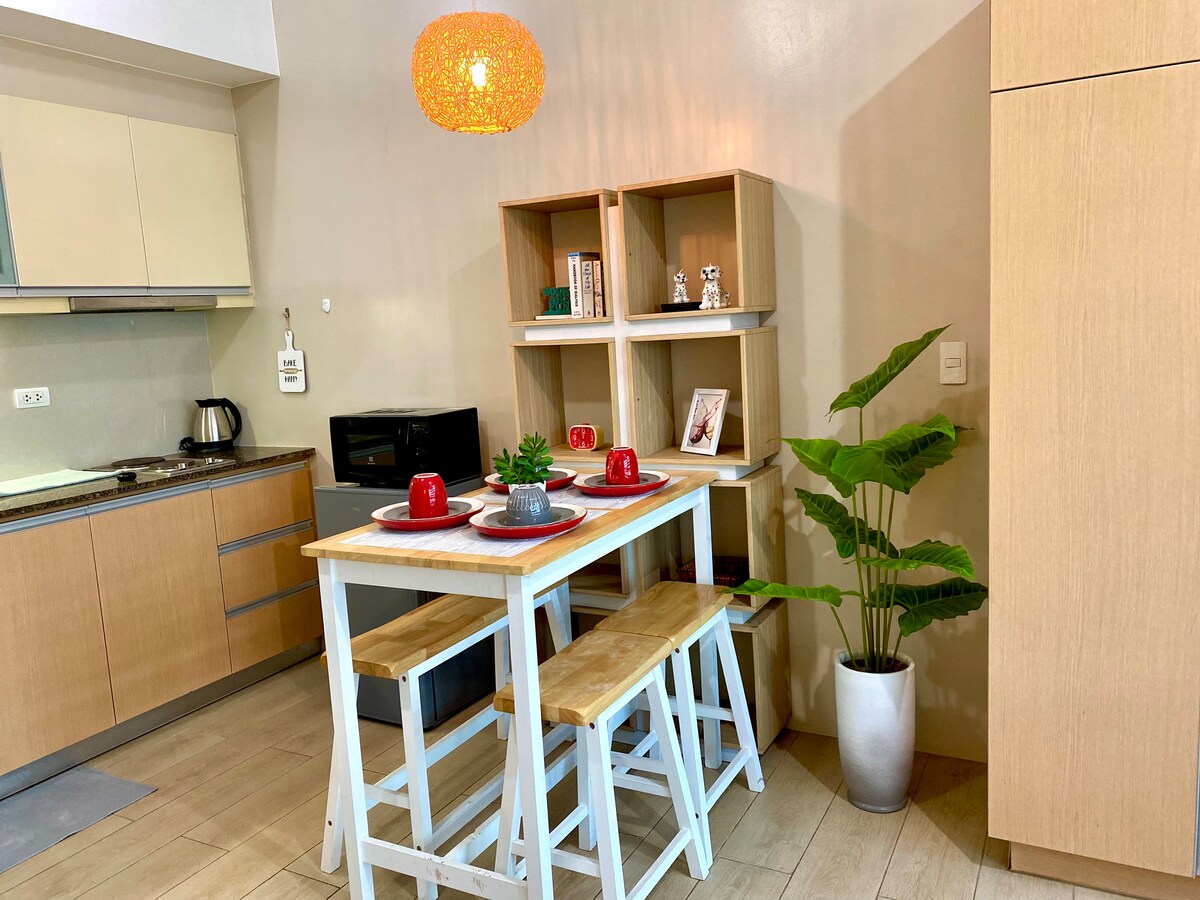 Opustite se u našem minimalističkom utočištu dizajniranom sa toplim drvenim tonovima, bijelim detaljima i blagim osvjetljenjem. Zabilježite suštinu svog boravka s velikim ogledalom, savršenim za snimanje ambijenta prostora. Posmatrajte gradski pejzaž dok se mazite i provedite ugodnu noć. Pripremite romantični obrok u našoj potpuno opremljenoj kuhinji. Smještena u blizini tržnog centra Sta. Lucia East Grand, ova jedinica nudi spoj mira i pristupa gradu – idealno za parove koji traže romantičan odmor.